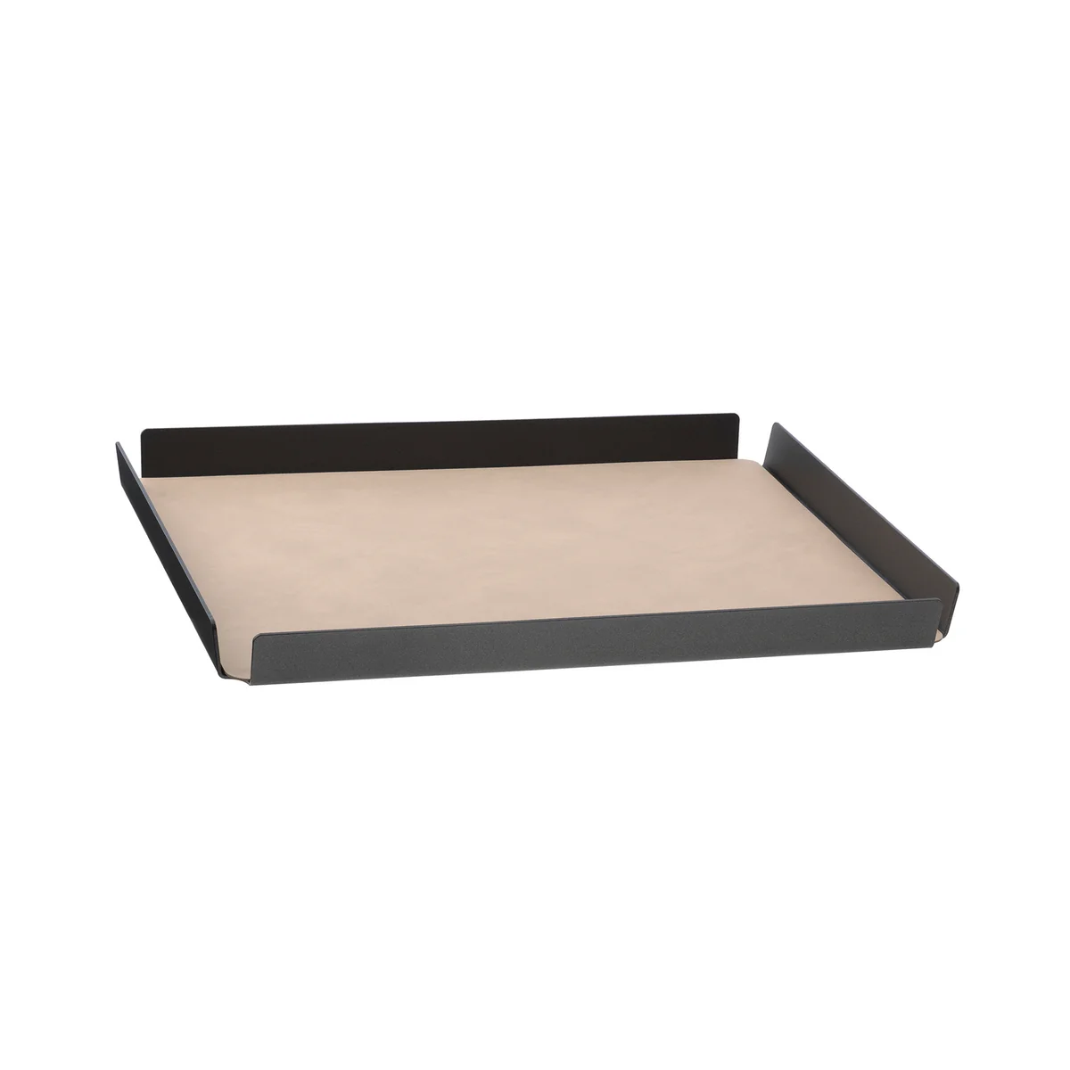 Het maakt niet uit wat je doet met de lade Square M Het sterke aluminium en het vlekbestendige leer houden het dienblad in topvorm. Tijdens het recyclingproces werd 20% natuurlijk rubber aan het leer toegevoegd, waardoor het duurzamer is dan traditioneel leer. Het is zeer gemakkelijk schoon te vegen met een natte doek.