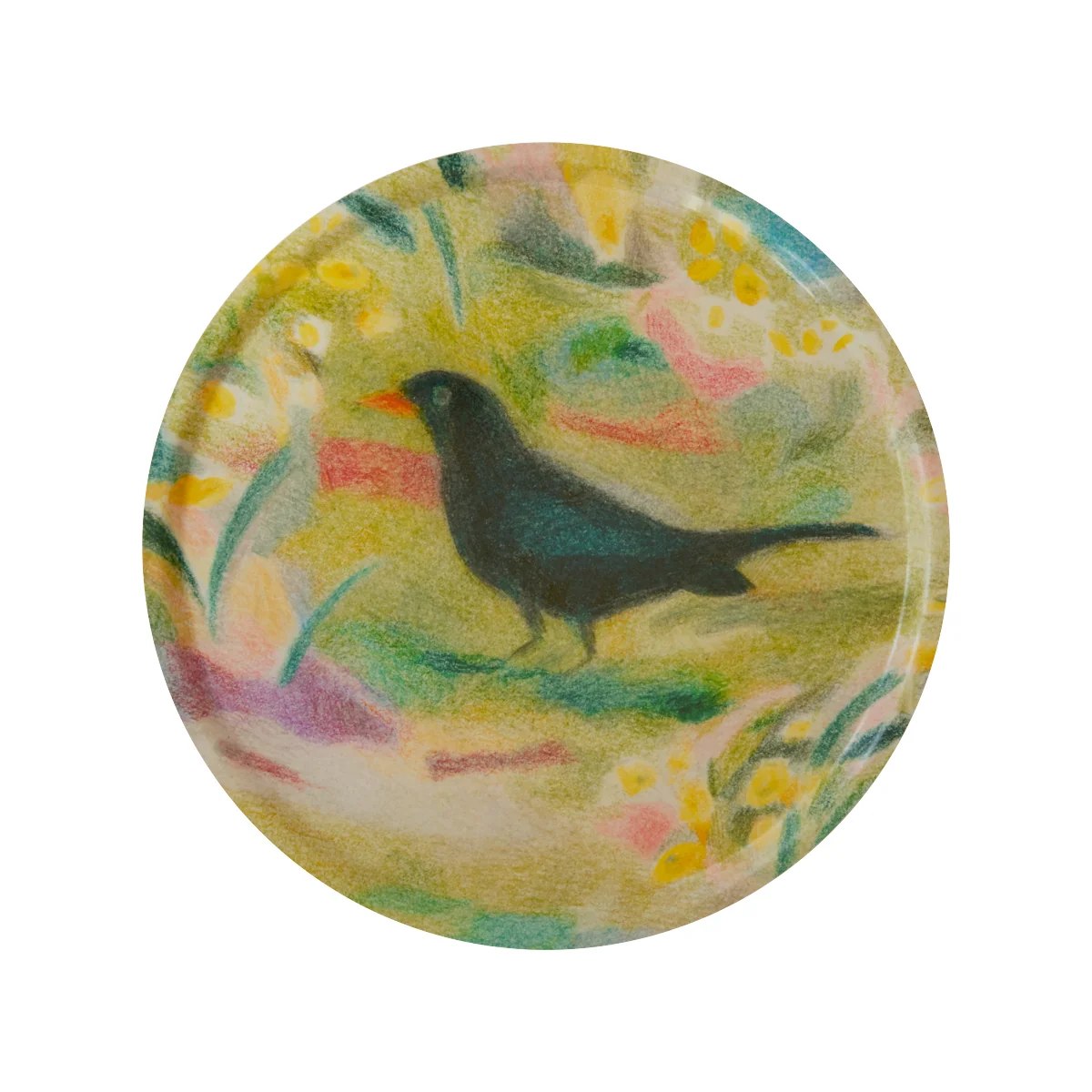 Het Un Merle dienblad transformeert het gelijknamige kunstwerk van Line Hachem in een functioneel woonaccessoire. Het fijne lijnmotief toont een scène uit de natuur, getekend met potlood en zachte kleuraccenten. De rustige compositie creëert een poëtische sfeer in de keuken, eethoek of woonkamer. Als dienblad combineert het praktische bruikbaarheid met artistieke expressie - een rustig, harmonieus accent in het dagelijks leven.