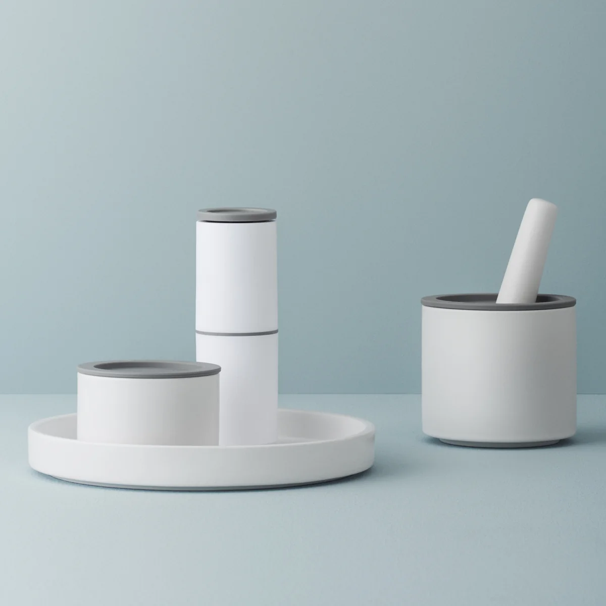 Met de ronde Spice-It dienblad door Rig Tig, ingrediënten, specerijen en oliën decoratief op tafel kunnen worden gezet. Met zijn discreet design en tijdloze vorm straalt het dienblad orde en helderheid uit.