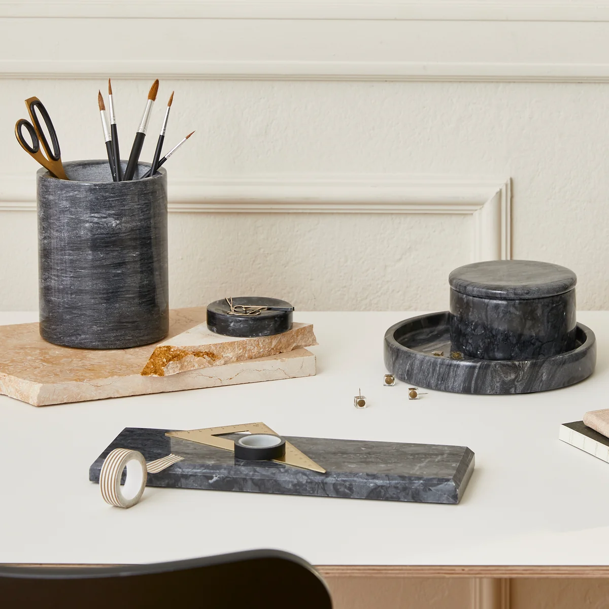 De marmeren collectie van yunic brengt tijdloze stijl in elke kamer van het huis. De serie omvat schalen, kommen, opbergdozen en nog veel meer. Het bijzondere eraan: de stijlvolle woonaccessoires van marmer zijn absoluut niet slechts voor één doel geschikt, maar kunnen op vele manieren worden gebruikt! Het dienblad wordt een opbergbakje, het zeepbakje dient als juwelenhouder, of in het opbergbakje kunnen zowel kookgerei als bijvoorbeeld kwasten in het atelier worden opgeborgen.