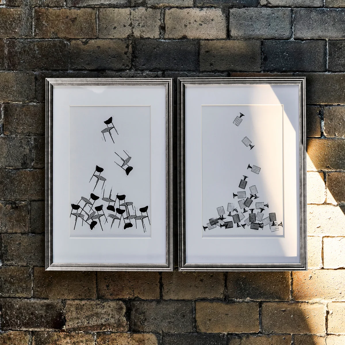 Dit wandkunstwerk combineert een klassiek zwart-wit motief met een frame van antiek zilver aluminium dat een elegante toets geeft aan het ontwerp. House Doctor Het speelse motief met tafellampen past naadloos in verschillende interieurstijlen en is ideaal om te combineren met andere kunstwerken. Op zichzelf of als onderdeel van een galeriewand, het voegt een moderne look toe aan elke kamer.