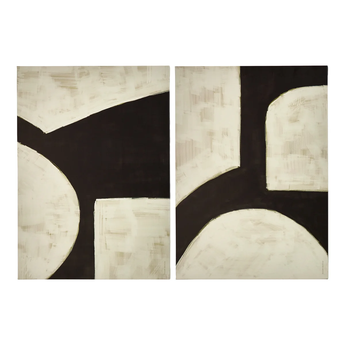 Deze tweedelige muurkunstset brengt een moderne esthetiek in woon- of werkruimtes. De grafische motieven in zwart en gebroken wit op canvas passen naadloos in verschillende interieurstijlen. De minimalistische ontwerpen geven kamers karakter en een tijdloze uitstraling.
