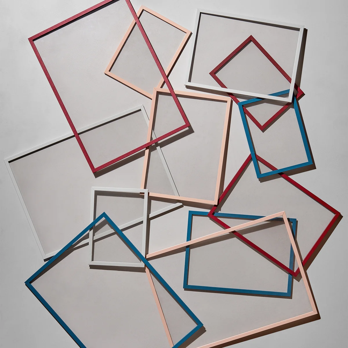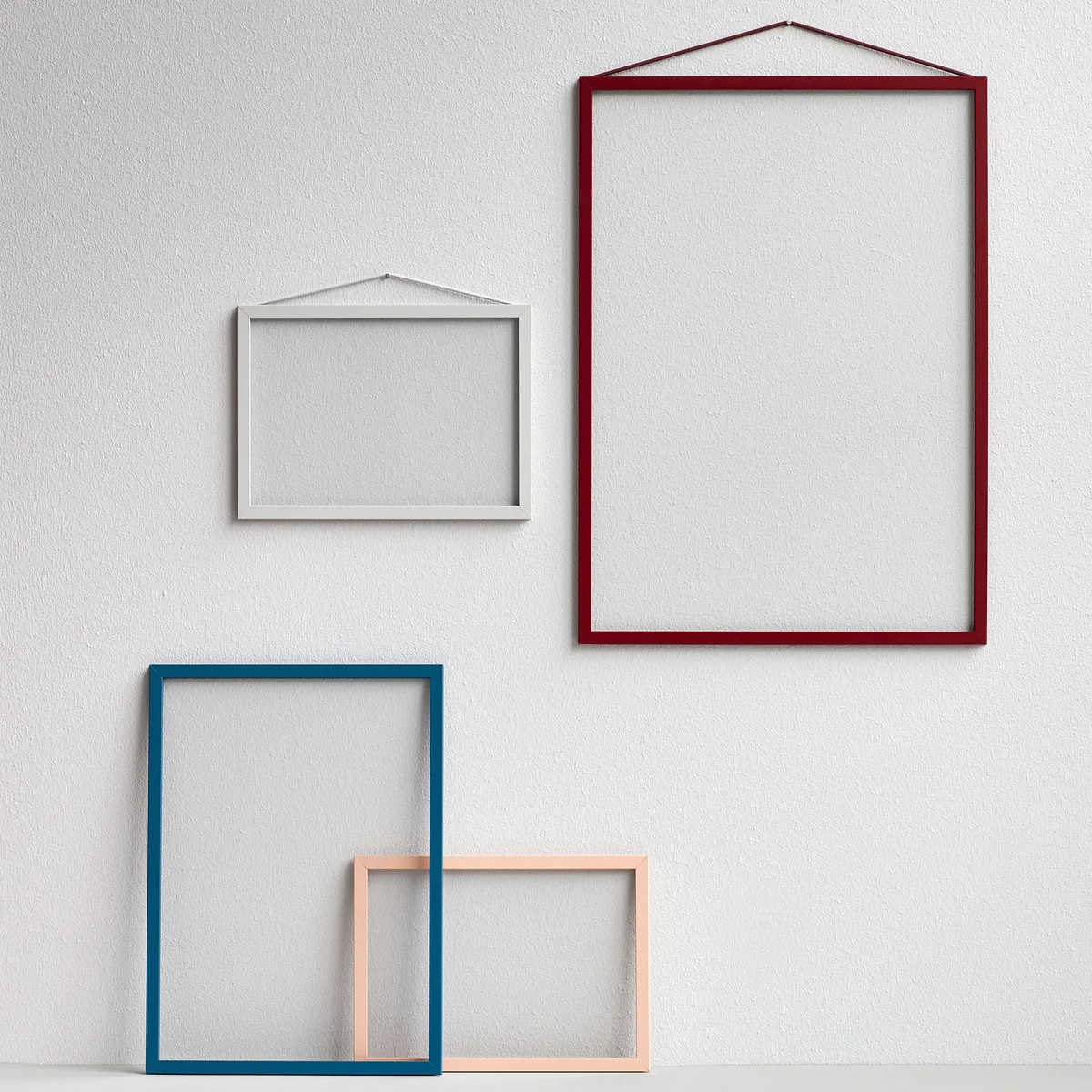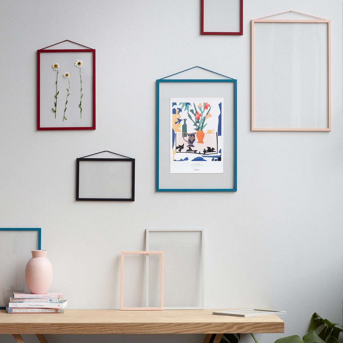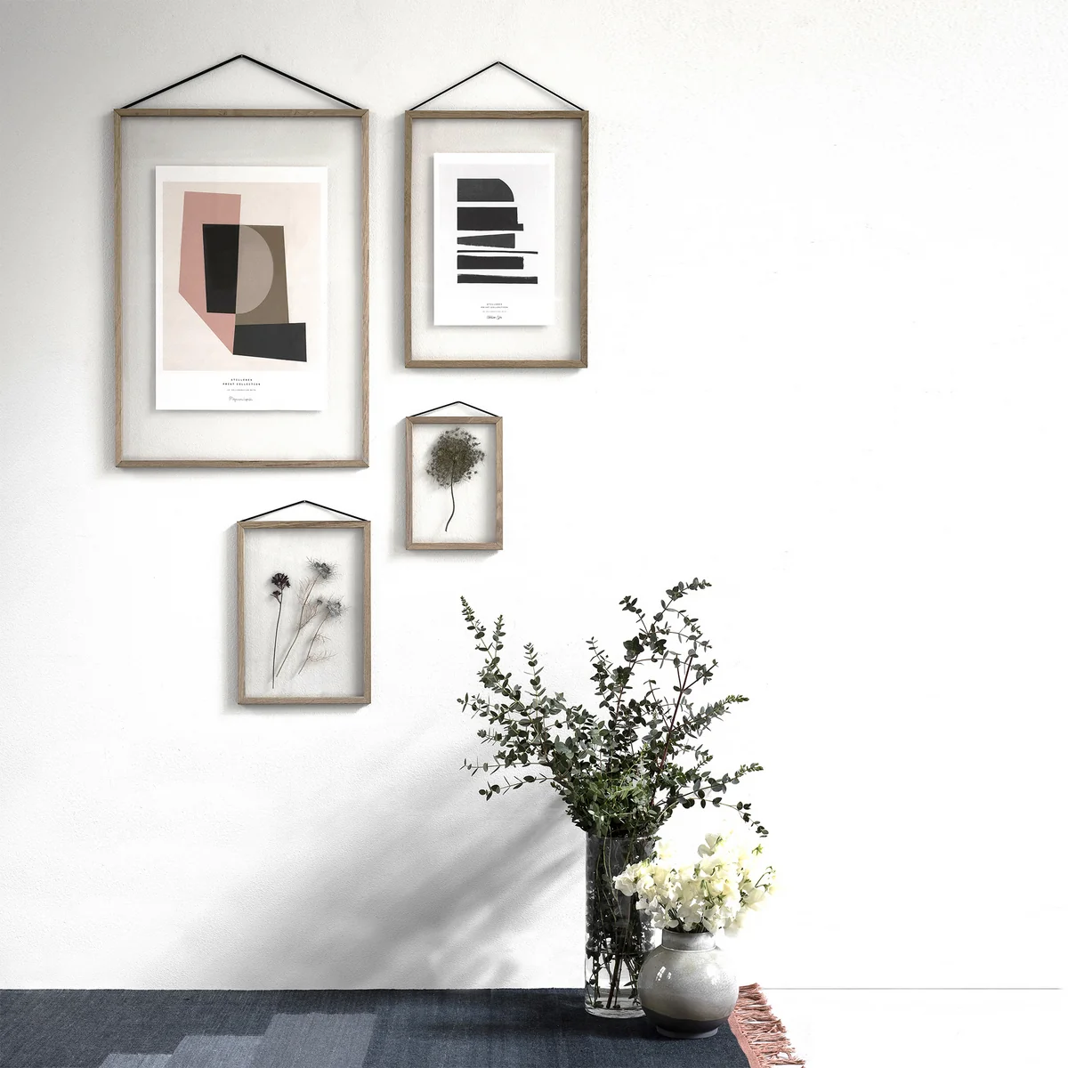 Met de Frame fotolijsten van Moebe kun je je eigen vier muren personaliseren. De lijsten zijn gemaakt van gepoedercoat aluminium of hout en twee ruiten acrylglas. Een klassieke achterwand is weggelaten, waardoor het geheel er licht, luchtig en transparant uitziet. Kleinere prints of foto's lijken te zweven in het frame en zijn transparant. Frame lijken te zweven in het frame en worden omringd door een transparant passe-partout. Gedroogde bloemen, zelfgeschilderde foto's of ansichtkaarten vinden ook hun plaats tussen de ruiten en kunnen stijlvol worden tentoongesteld.