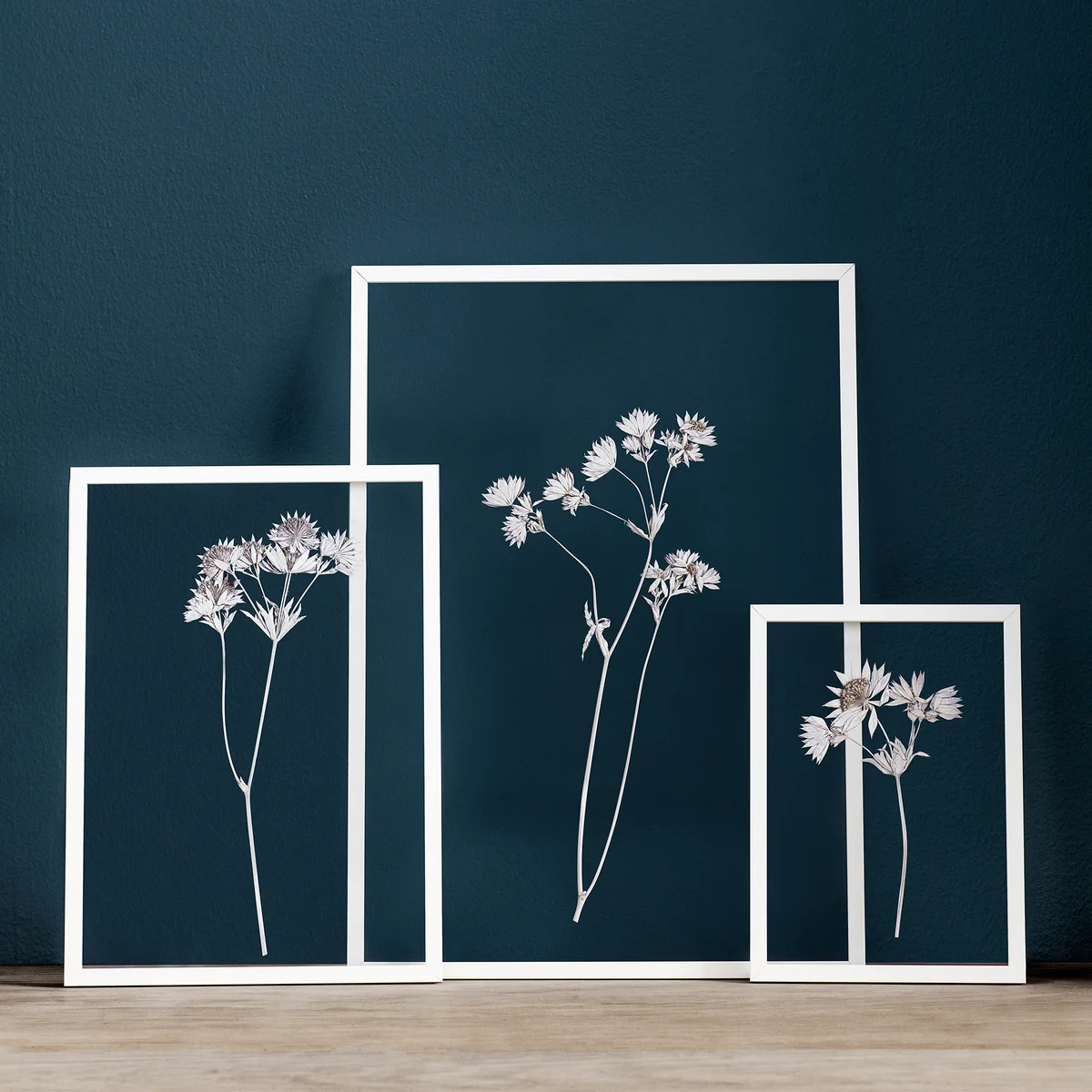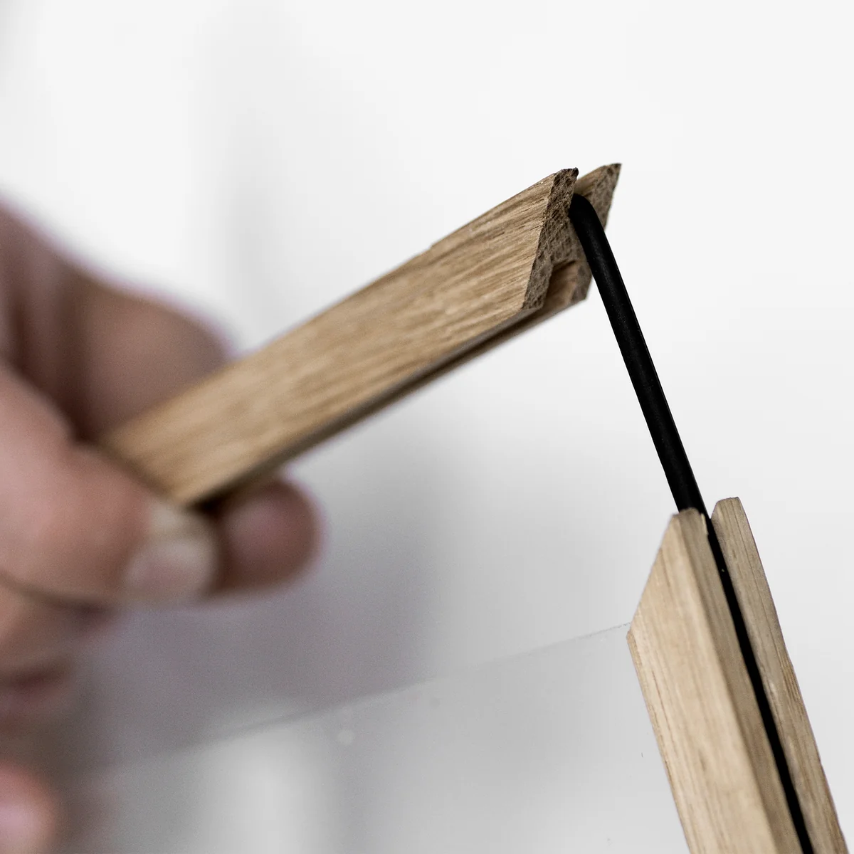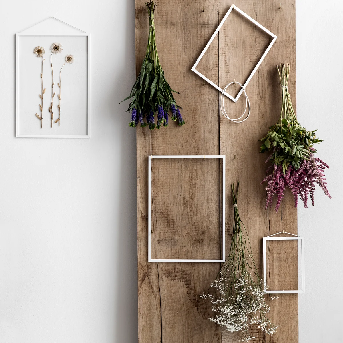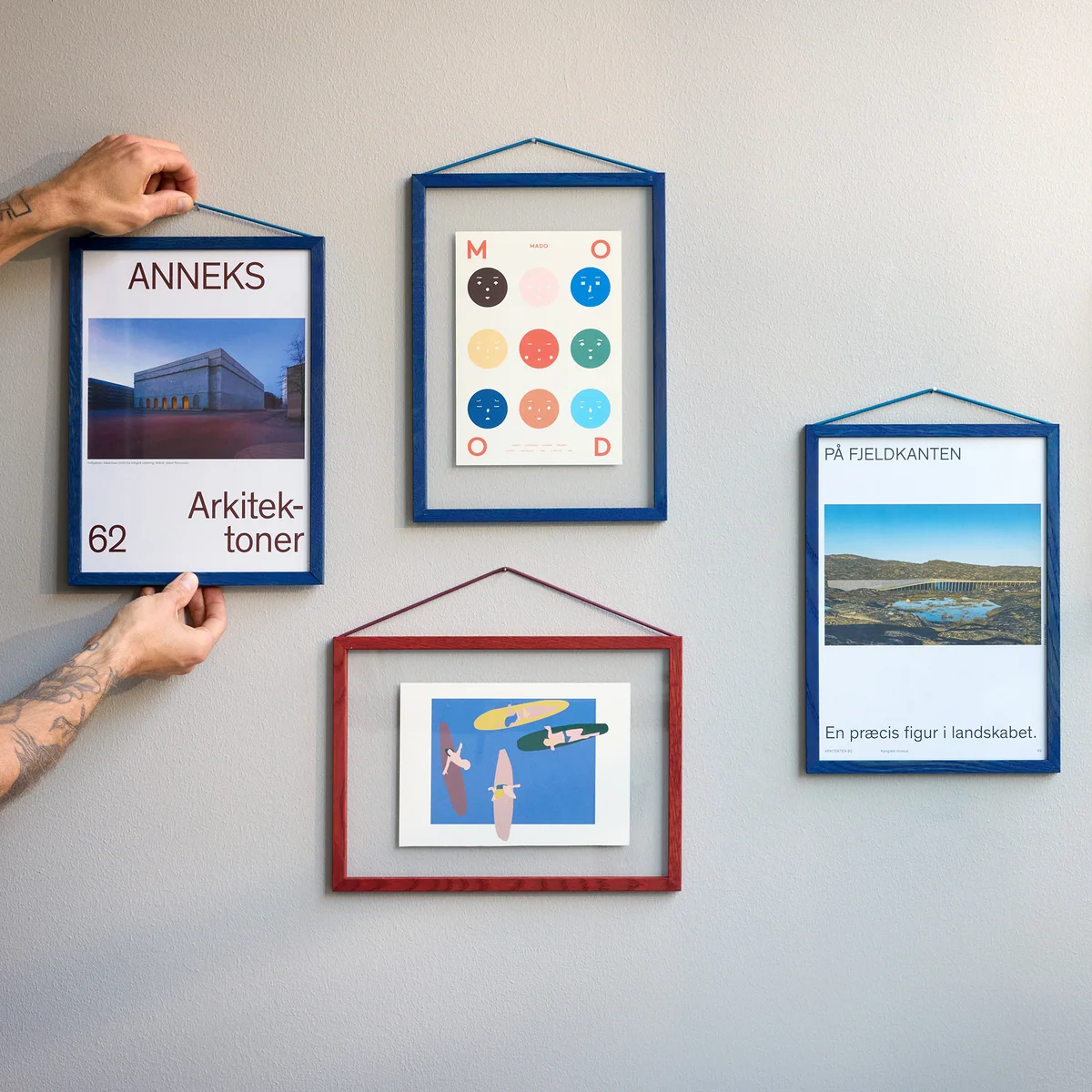 Met de Frame fotolijsten van Moebe kun je je eigen vier muren personaliseren. De lijsten zijn gemaakt van gepoedercoat aluminium of hout en twee ruiten acrylglas. Een klassieke achterwand is weggelaten, waardoor het geheel er licht, luchtig en transparant uitziet. Kleinere prints of foto's lijken te zweven in het frame en zijn transparant. Frame lijken te zweven in het frame en worden omringd door een transparant passe-partout. Gedroogde bloemen, zelfgeschilderde foto's of ansichtkaarten vinden ook hun plaats tussen de ruiten en kunnen stijlvol worden tentoongesteld.
