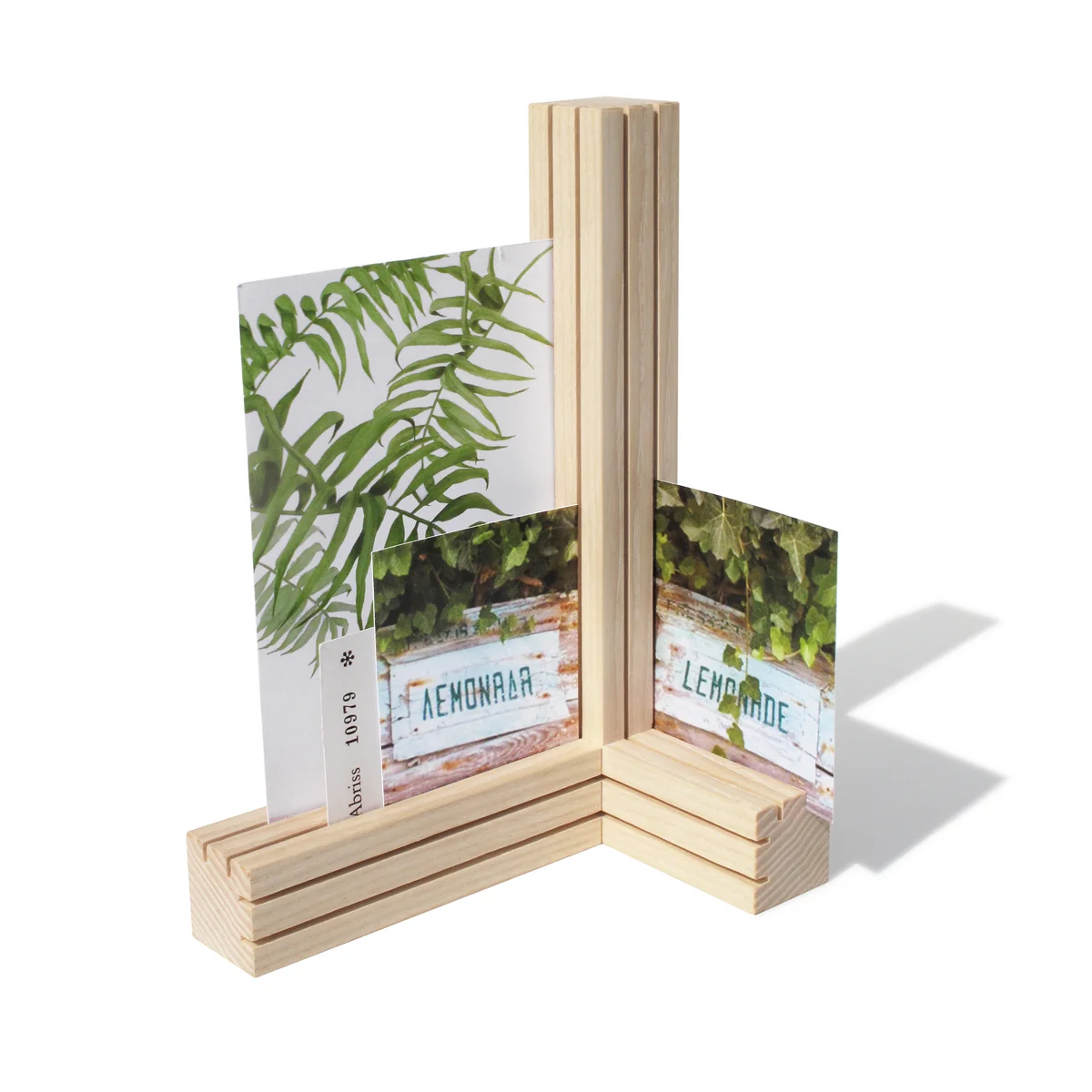 De Tri De kaarthouder van side by side is drie keer zo verschillend. Ansichtkaarten, herinneringen, brieven of notities vinden er orde en een representatieve woning in, bijvoorbeeld op het dressoir, het bureau of als middelpunt op de eettafel.