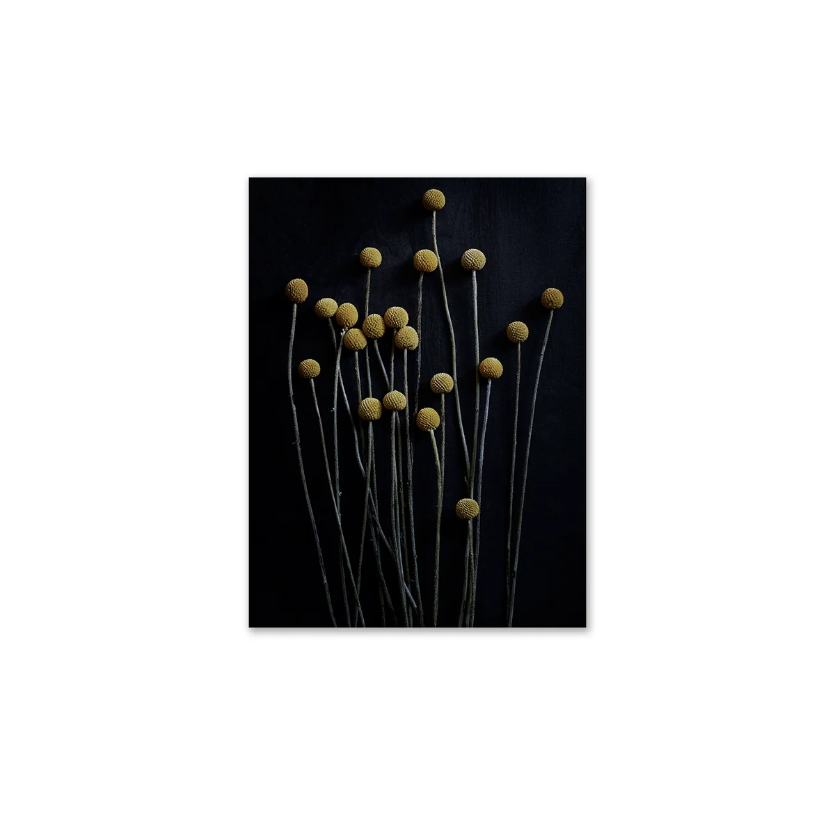 De Craspedia-bloemen, zelfs drumsticks genoemd, zijn door de kunstenaar gefotografeerd voor Paper Collective op een zwarte achtergrond, wat de zeer kleurrijke, ronde bloemen een mystieke uitstraling geeft.