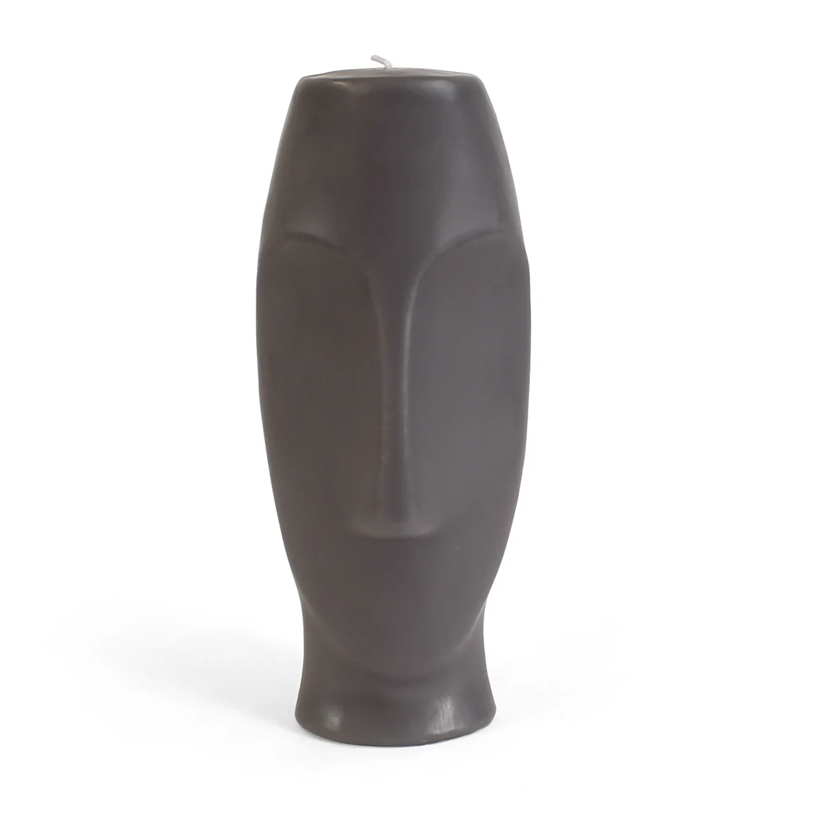 De grote kaars met gezicht overtuigt zowel als decoratief accessoire als als ongewone blokkaars.
