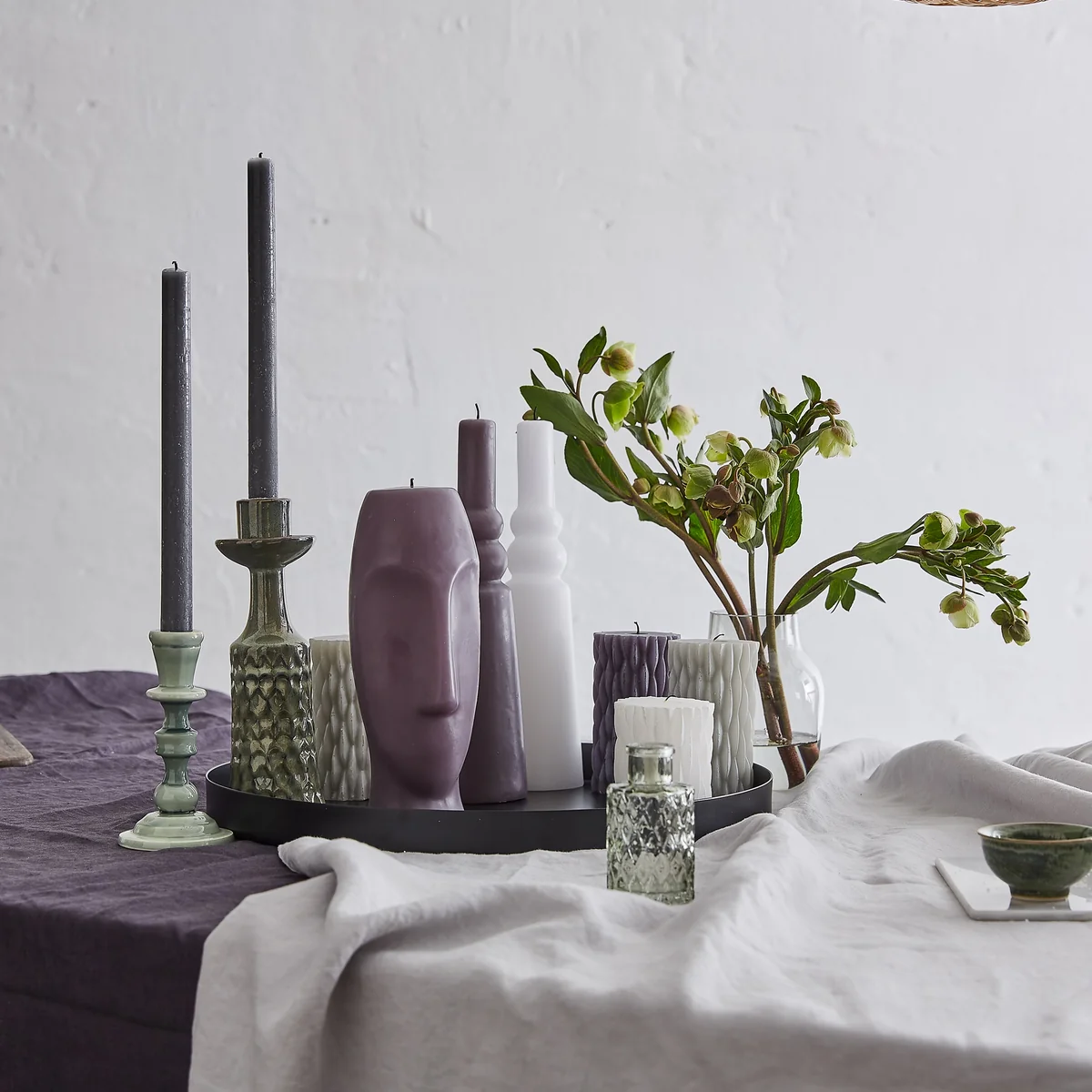 In combinatie met een bijpassend dienblad of onderzetter kan de bijzondere decoratieve kaars in scène worden gezet op het dressoir, salontafel of vensterbank. Vooral in het donkere seizoen is de gezichtskaars een speciale blikvanger, die naar wens gecombineerd kan worden met andere geur-, stok- of blokkaarsen.
