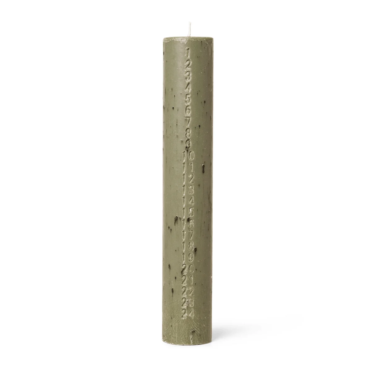 De Mura adventskaars is gemaakt van zuiver stearine, is verkrijgbaar in een verfijnd, aards kleurenpalet en is versierd met handgerolde, reliëfgedrukte cijfers die het aftellen tot kerstavond aangeven. De charmante organische look geeft elke kamer een feestelijk en artistiek tintje. Let op: door het handrollen kunnen er kleine variaties optreden in het uiterlijk van de cijfers.