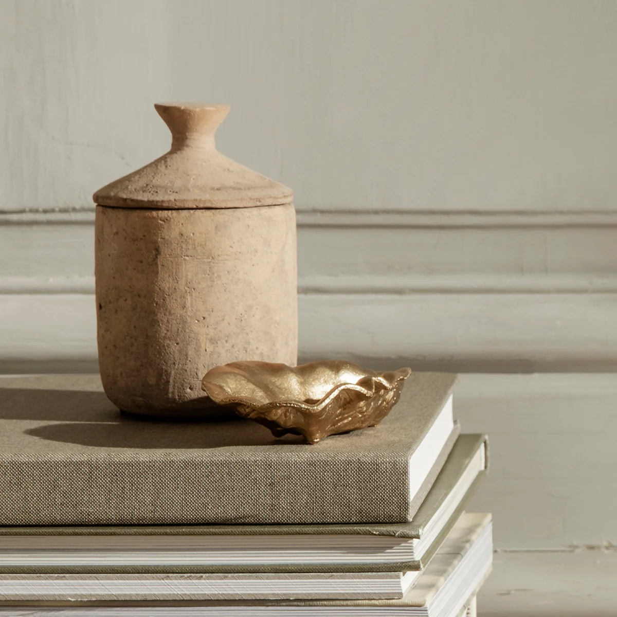 De Ura geurkaars van Ferm Living doet denken aan schatten uit het verleden: de handgeperste steengoed die de verschillende geuren van de Ura Scented Candle serie, heeft een ruw oppervlak dat er heel natuurlijk en esthetisch uitziet.