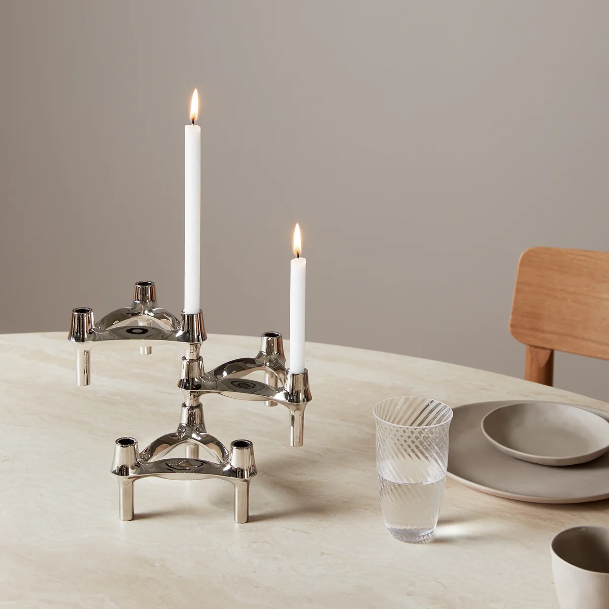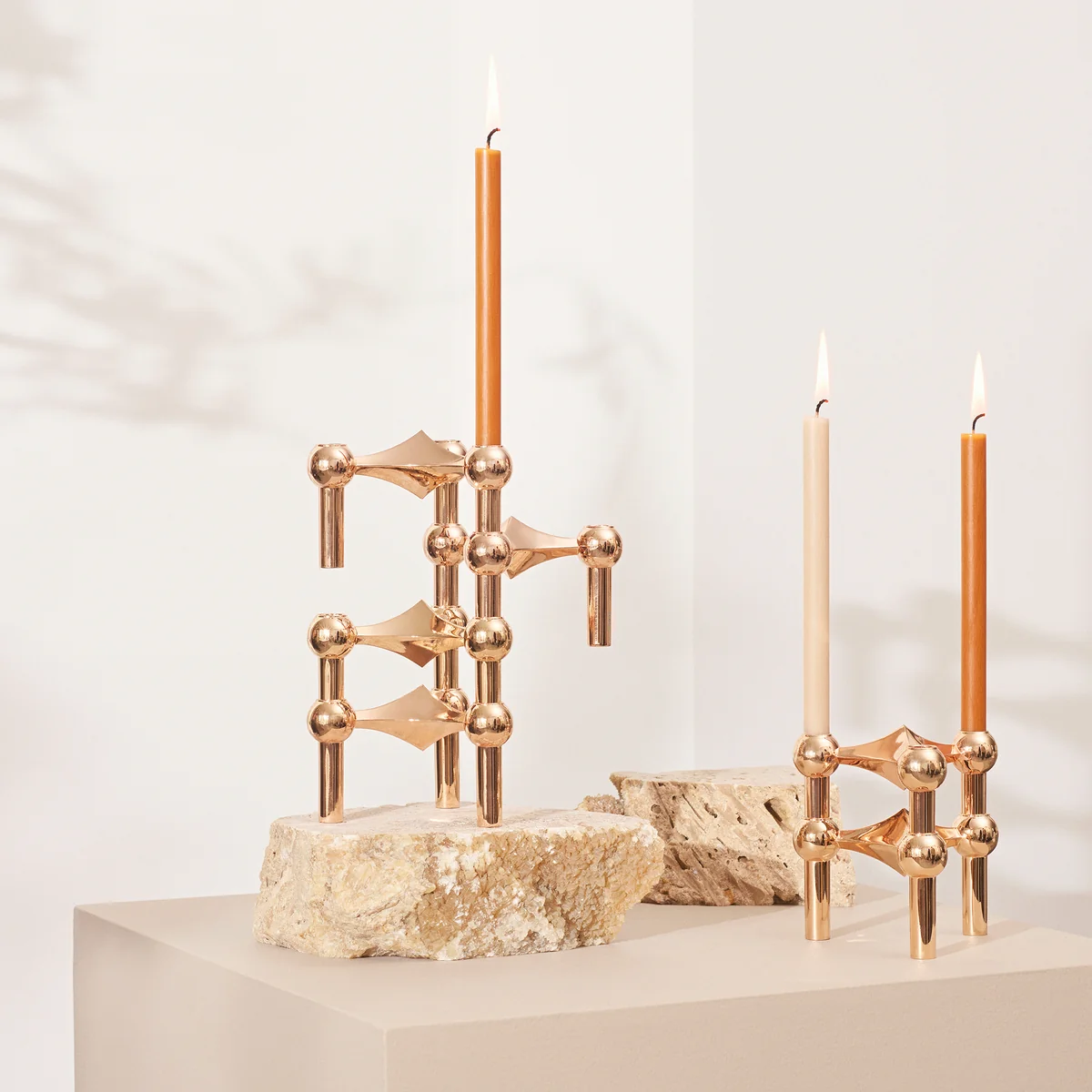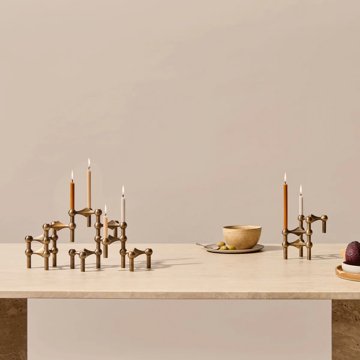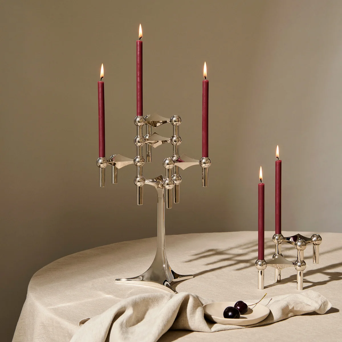 De kaarsen van Stoff Nagel zijn de perfecte accessoire voor de iconische Stoff Nagel kandelaar, die eind jaren 60 werd ontworpen door Hans Nagel en Werner Stoff ontworpen aan het einde van de jaren 60. De staafkaarsen met een diameter van 1,3 cm en een lengte van 18 cm zijn gemaakt in Duitsland van volledig geraffineerde paraffinewas. De brandtijd is +/- 3,5 uur. De kaarsen zijn verkrijgbaar in een praktische set van 12 en worden geleverd in een doos.