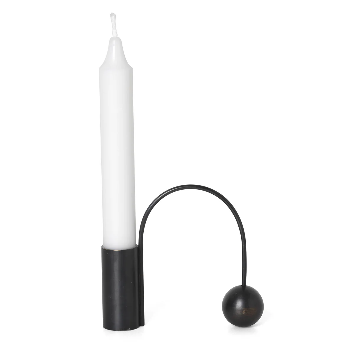 De Balance kandelaar van Ferm Living imponeert met zijn sculpturale, geometrische vorm. Het meesterlijke evenwicht wordt bereikt dankzij een tegenwicht, waardoor de kandelaar een klein kunstwerkje is.