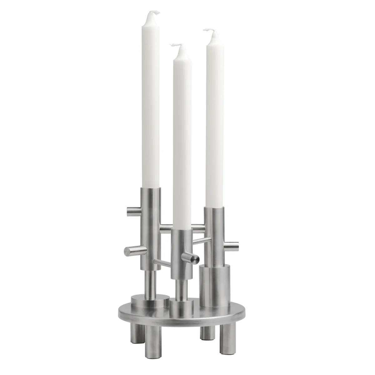 De 3 kaarsenhouder van Fritz Hansen is ook verkrijgbaar in een enkele versie voor een stompkaars.