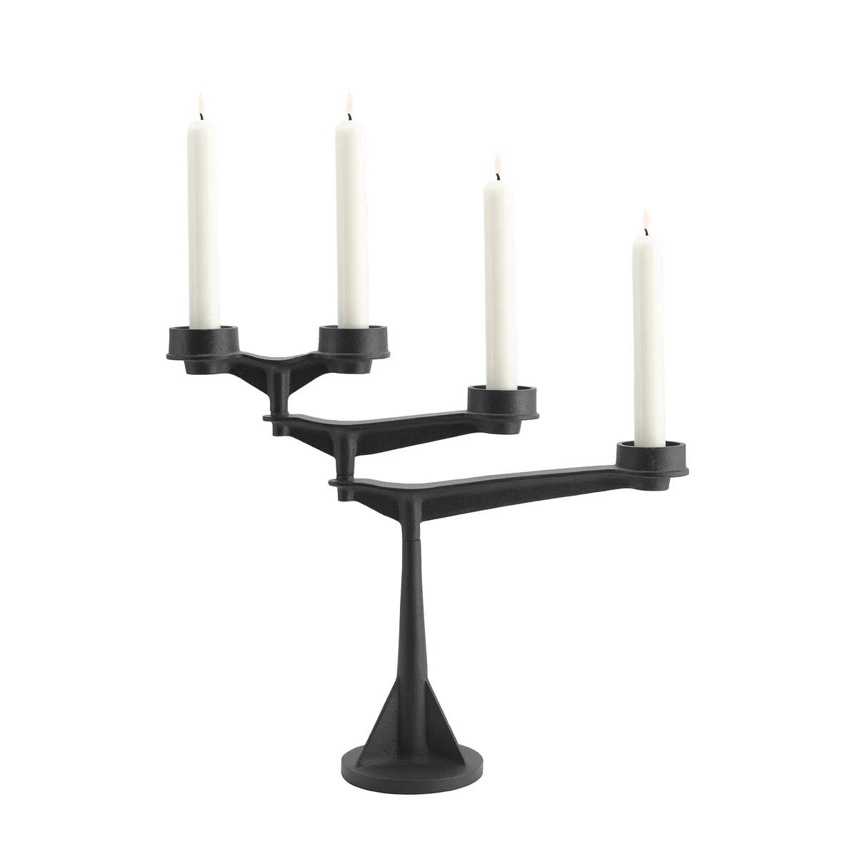 Op het eerste gezicht staan deze flexibiliteit en wendbaarheid in contrast met het zware en massieve gietijzer. Maar op het tweede gezicht is het juist dit contrast dat de Spin tafelkandelaar.