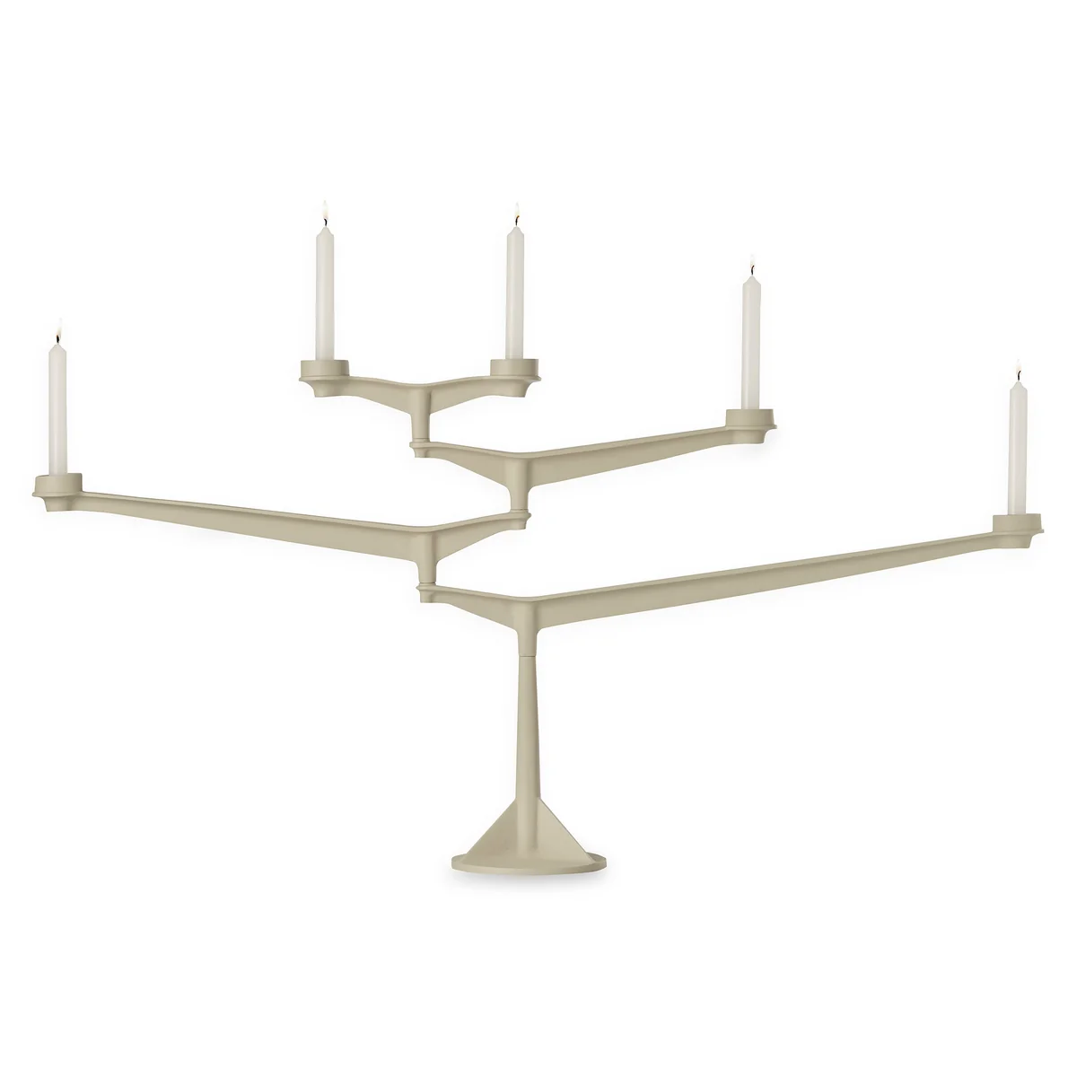 De Spin tafelkandelaar combineert zwaar materiaal en wendbaarheid tot een buitengewoon meubelstuk. Er kunnen vijf kaarsen op Spin ruimte vinden. Elk van de kaarsen is bevestigd aan een van de uitstekende armen. De armen kunnen op hun kruispunten worden gedraaid. De Spin kandelaar kan naar wens verschillende vormen aannemen.