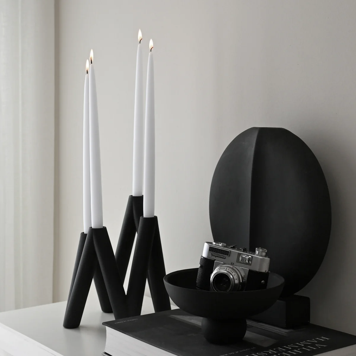 De kandelaar is verkrijgbaar in verschillende versies en kleuren om aan individuele voorkeuren te voldoen. Op zichzelf staand of in combinatie met andere W kandelaars - de creativiteit kent geen grenzen. De matte afwerking geeft de standaard een aangename uitstraling en benadrukt de moderne look.