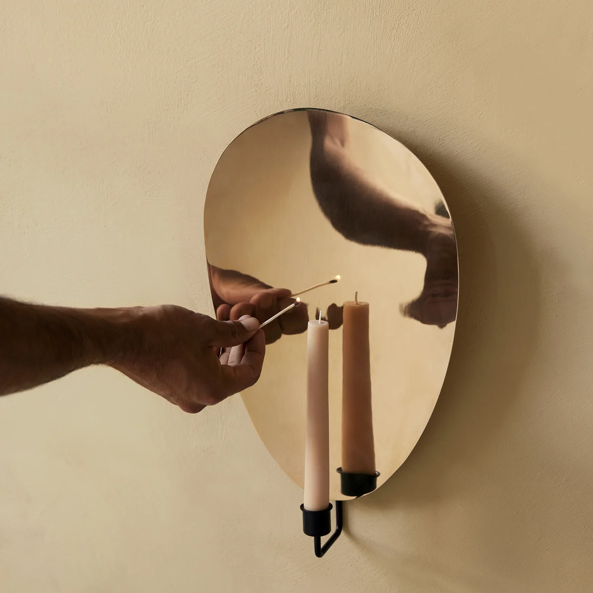 De Flambeau wandkandelaar van Audo presenteert zich in een modernistische look die elke muur verfraait. De vorm van de kandelaar lijkt op een vlam en tegelijkertijd zorgt de afwerking van het oppervlak ervoor dat het licht van de kaars prachtig wordt gereflecteerd en er een aangename en warme sfeer ontstaat. De kaarsenhouder zorgt voor een bijzondere charme en kan afzonderlijk of naast elkaar aan de muur worden bevestigd. De Flambeau kandelaar van Audo is verkrijgbaar in verschillende versies.