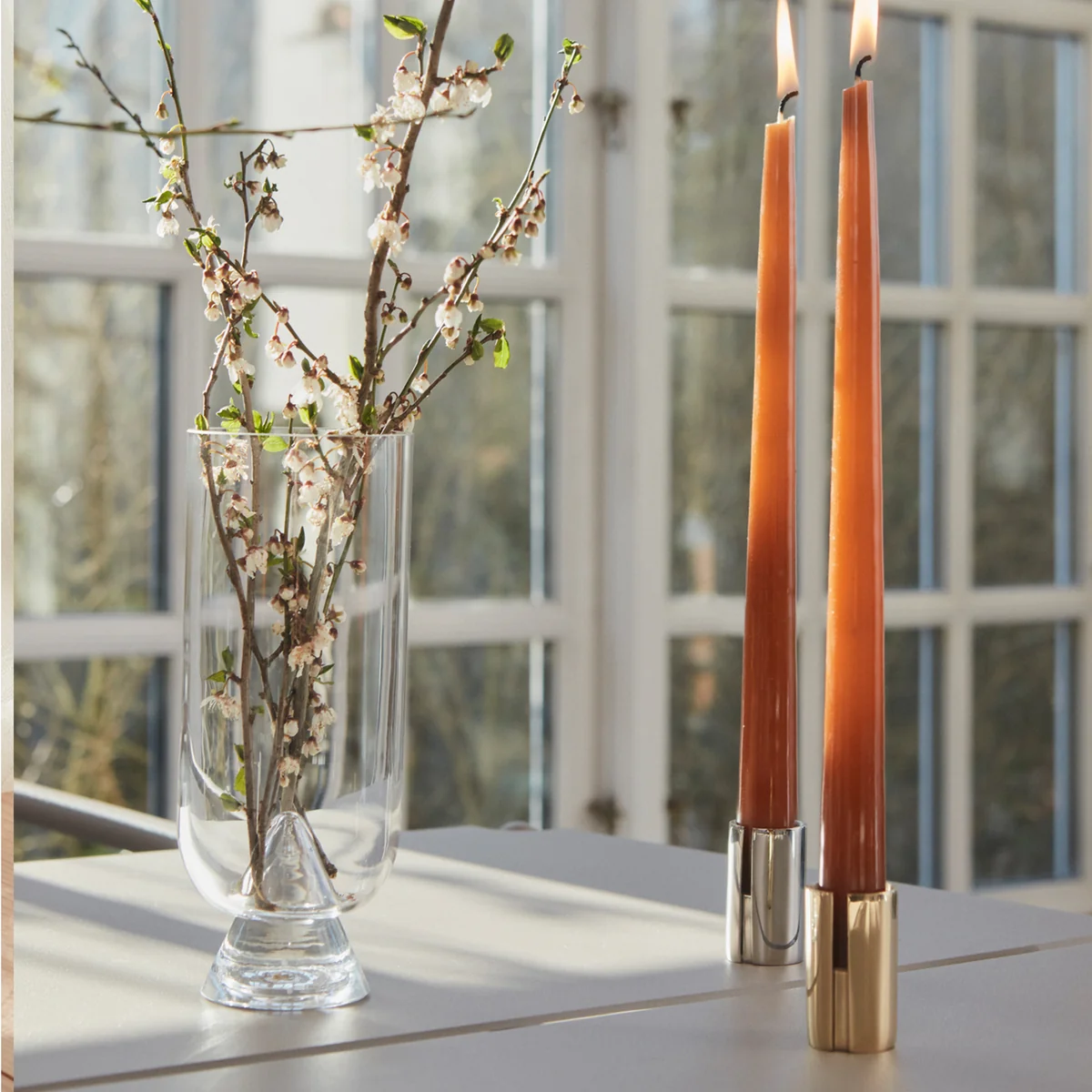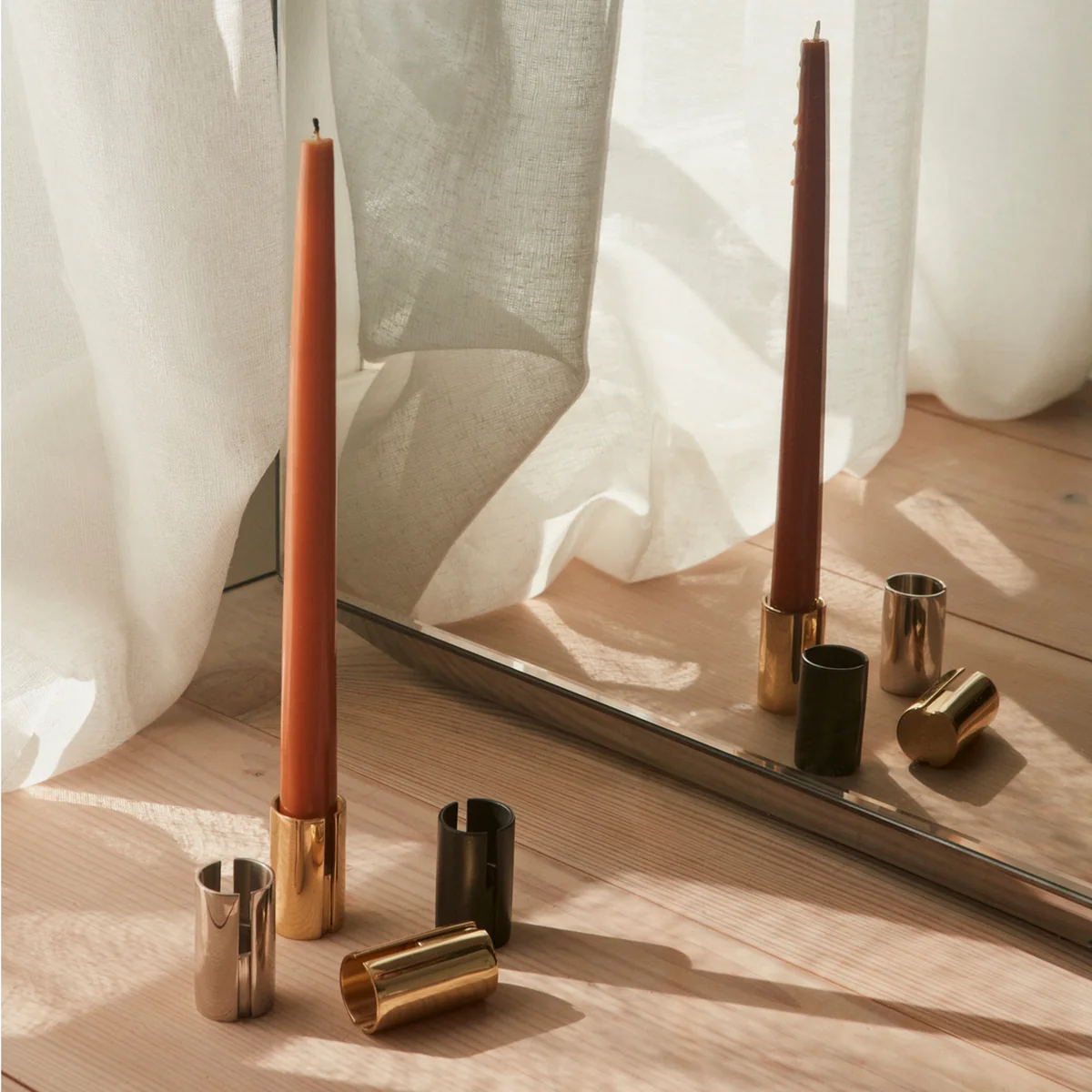 AYTM produceert de kleine kandelaar in verschillende edele kleuren uit messing.