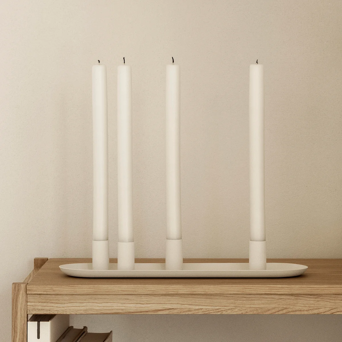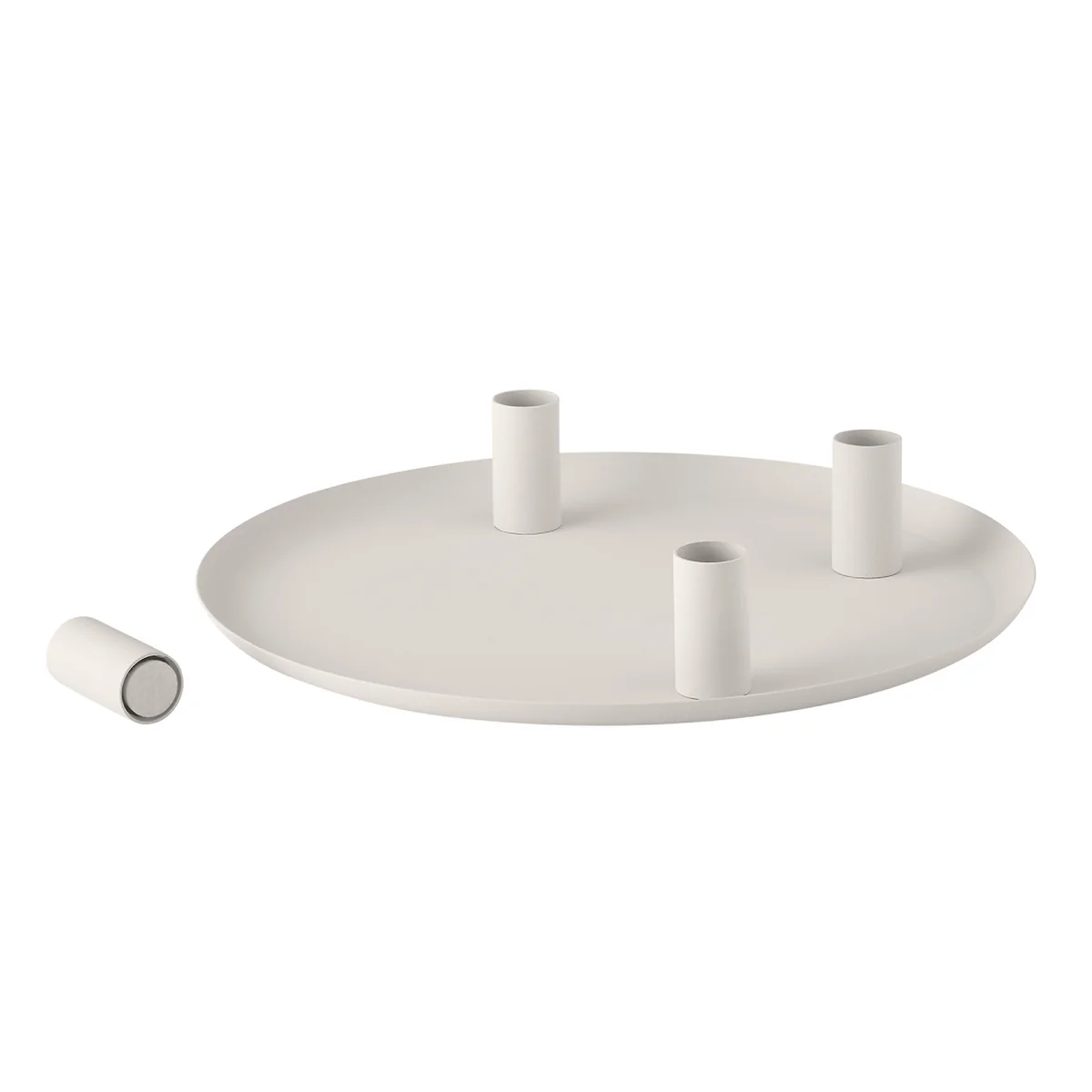 De kandelaars kunnen dankzij magnetische elementen vrij op het dienblad worden gerangschikt. Zo ontstaat een opstelling op maat die steeds opnieuw kan worden gerangschikt, afhankelijk van de stemming, het seizoen of de gelegenheid. Als stijlvol decoratief object of als sfeervolle basis voor kaarsen in het gezellige seizoen - de Loha kaarsenhouder is een tijdloze allrounder voor modern wonen.