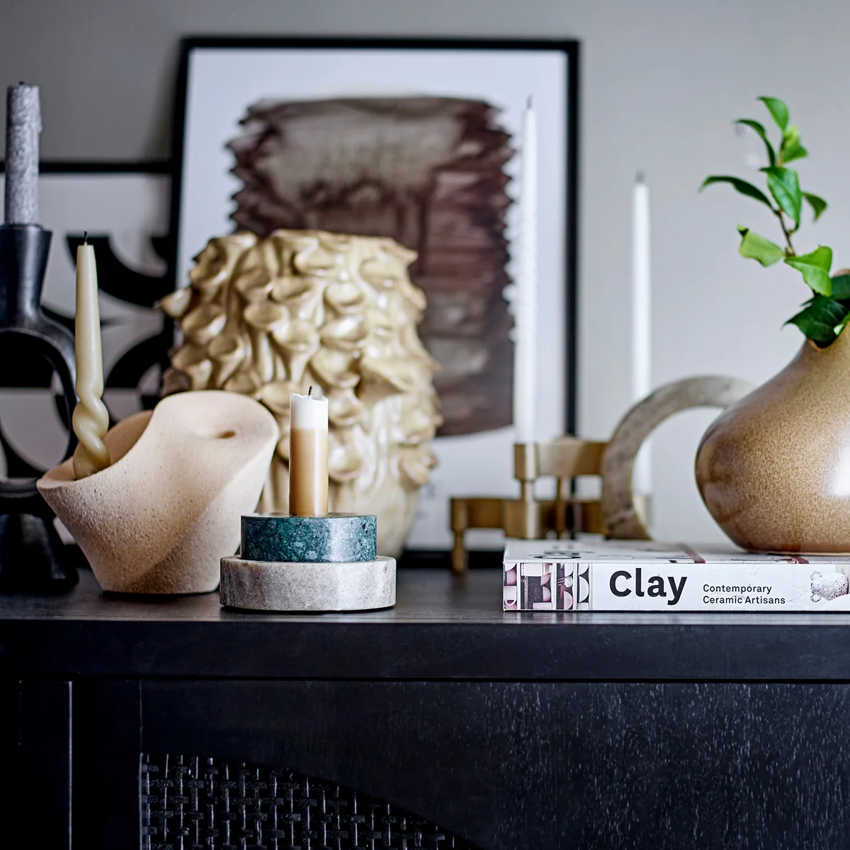 De Brent kaarsenhouder van Bloomingville is ontworpen in een mooie grafische vorm met een matte structuur in een warm beige - er is ruimte voor twee kaarsen.