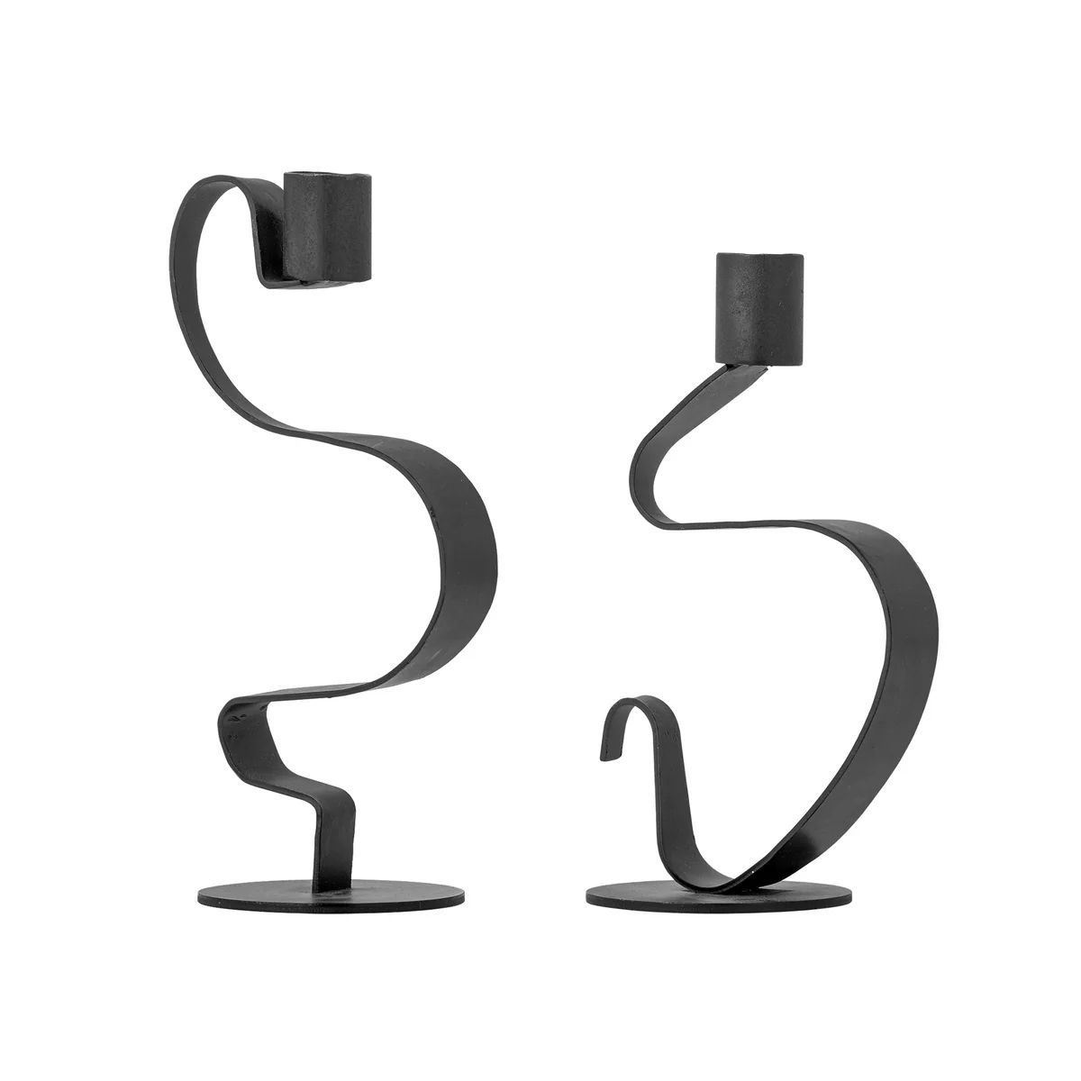 De Do kandelaars van Bloomingville combineren minimalistisch design met een opvallend effect. Gemaakt van robuust ijzer en afgewerkt met een ruwe, zwarte finish, zorgt hun gebogen vorm voor elegante accenten in de kamer. Het eenvoudige ontwerp in industriële stijl past perfect in moderne, minimalistische woonconcepten.