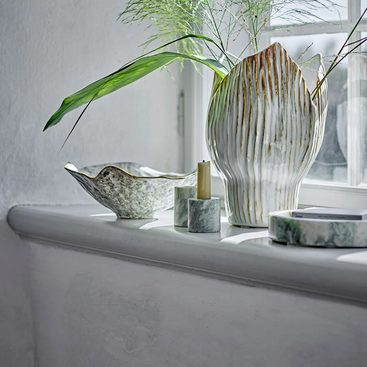 De Kokoro kaarsenhouderset brengt natuurlijke elegantie in elk huis. De twee kandelaars zijn gemaakt van prachtig groen marmer en maken indruk met hun hoogwaardige afwerking en tijdloze uitstraling. Samen, afzonderlijk of in combinatie met andere kandelaars - ze creëren stijlvolle accenten op vensterbanken, nachtkastjes of planken en voegen een persoonlijk tintje toe aan de kamer.