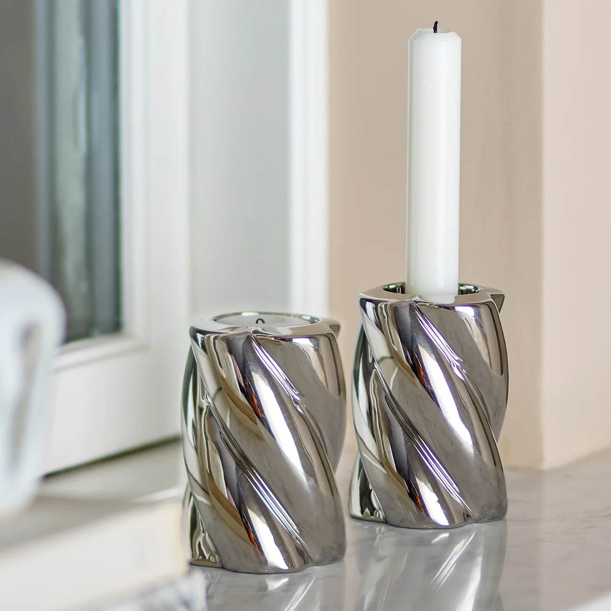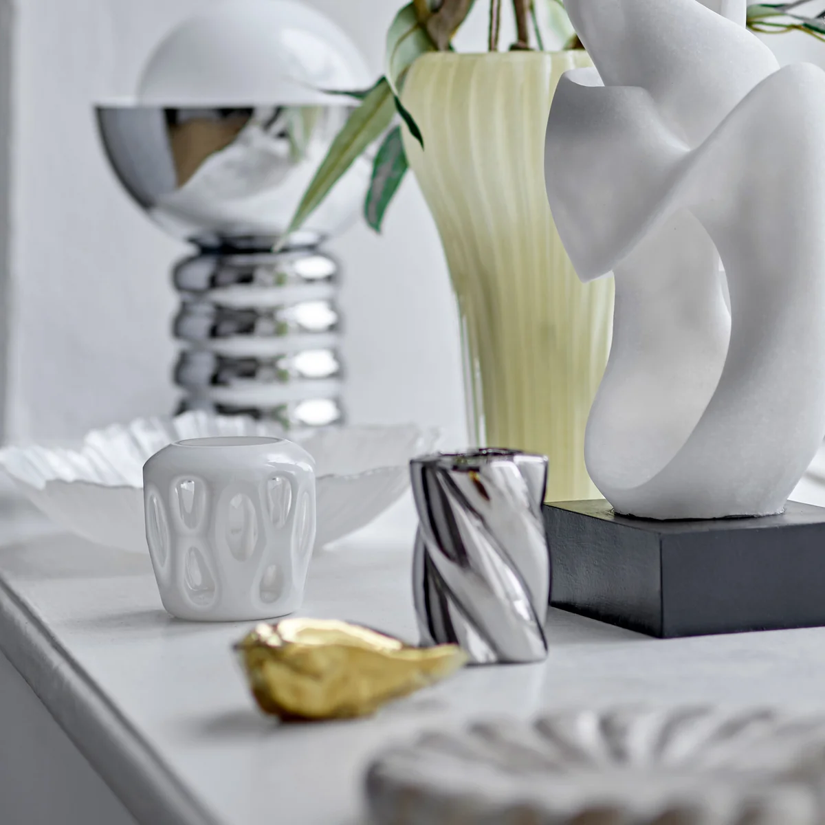 De Silvia kandelaars van Bloomingville maken indruk met hun elegante, minimalistische ontwerp. Ze zijn gemaakt van hoogwaardig steengoed en hebben een zilverkleurig glazuur dat het licht prachtig reflecteert en een verfijnde glans geeft aan elke kamer. Het glanzende oppervlak geeft de kandelaars tegelijkertijd een moderne en feestelijke uitstraling - ideaal voor het dekken van de tafel bij speciale gelegenheden, maar ook als stijlvol detail in het dagelijks leven.