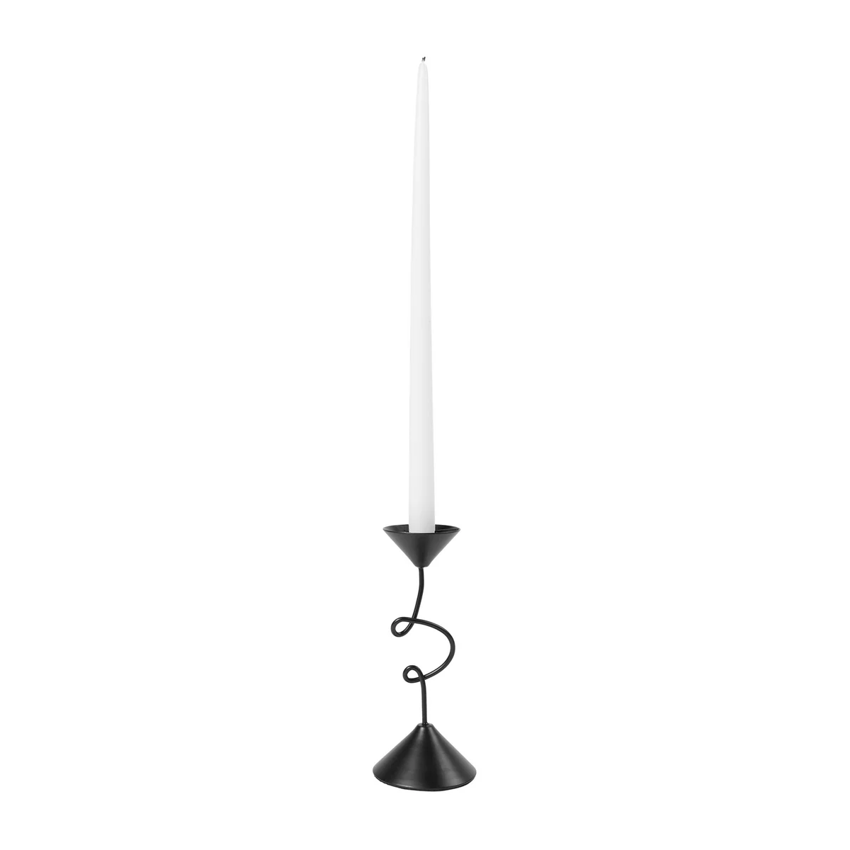 De expressieve vorm wordt benadrukt door een eenvoudige, gebogen draad die het bovenste en onderste deel op elegante wijze met elkaar verbindt. Op deze manier functioneert de kandelaar niet alleen als een prachtige lichtbron die een zachte en uitnodigende sfeer creëert, maar dient hij ook als een interessant gespreksonderwerp.