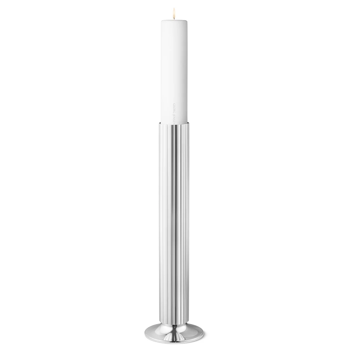 De Bernadotte staande kandelaar van de Deense fabrikant Georg Jensen inspireert met zijn elegante look. Hij is gemaakt van roestvrij staal en is bij uitstek geschikt voor kaarsen met een diameter van Ø 60 mm. De houder heeft een speer, die zorgt voor veiligheid en stabiliteit van de kaars. De kandelaar is verkrijgbaar in verschillende maten.