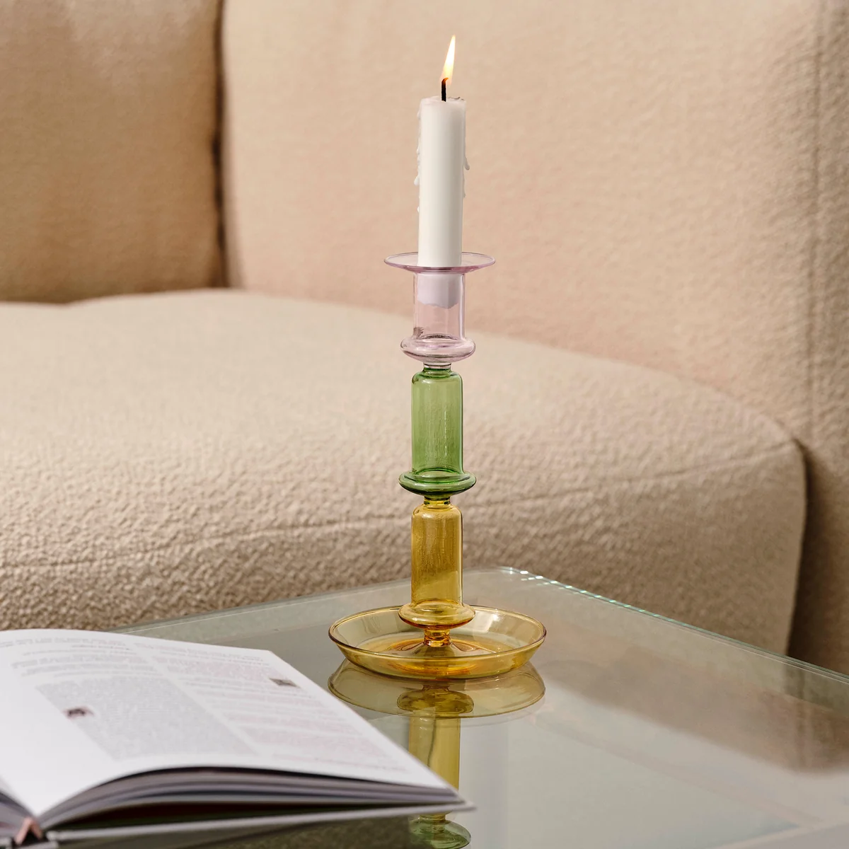 De Flare kandelaar van HAY is gemaakt van borosilicaatglas.