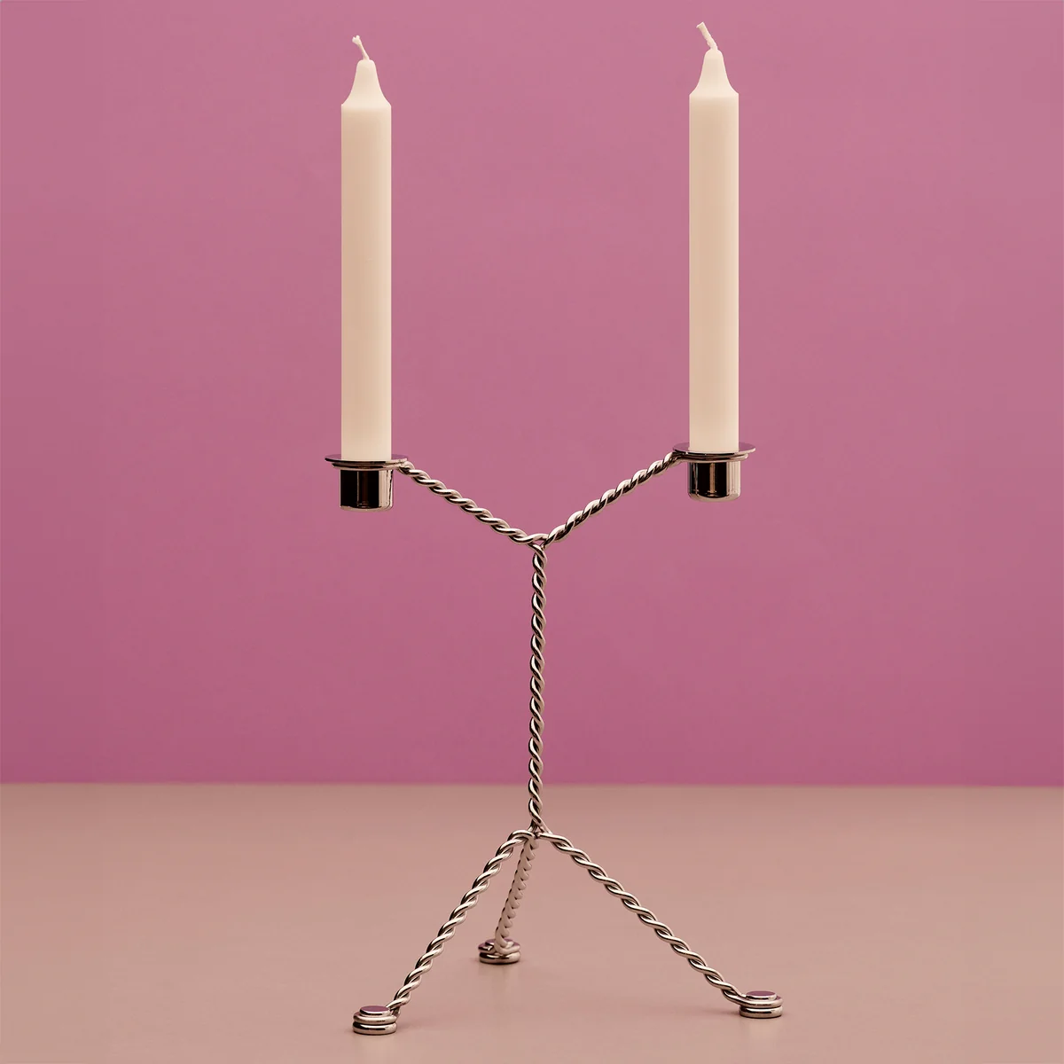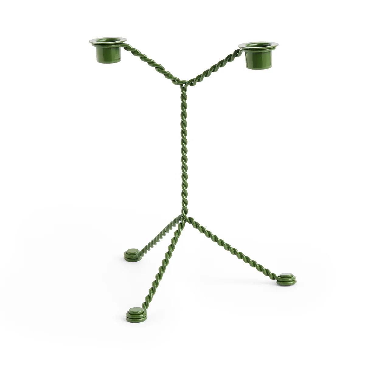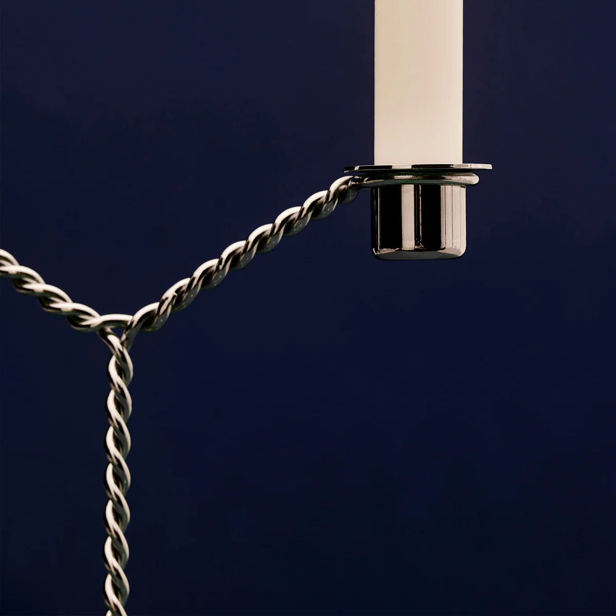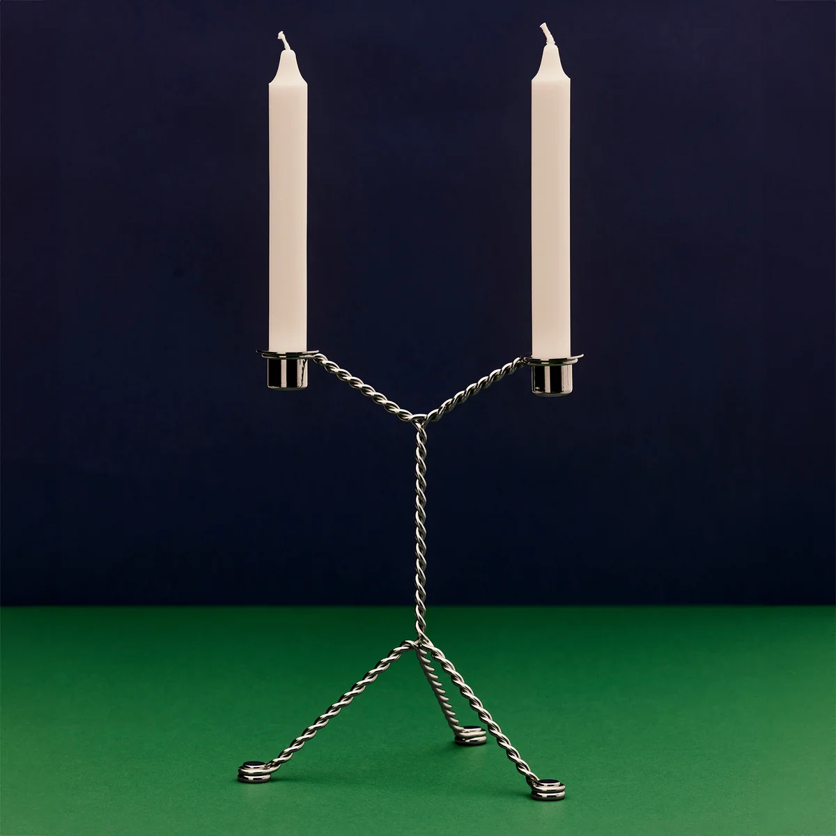 De Wire kandelaar voor HAY is ontworpen door de Nederlandse ontwerper Chris Kabel en bestaat uit een enkel stuk gedraaid staaldraad dat in een dubbele kandelaar is gegoten. De twee kandelaars aan de bovenkant worden in balans gehouden door drie schuine poten. Het resultaat is een eenvoudig maar elegant ontwerp dat geschikt is voor vensterbanken, eettafels of andere oppervlakken in huis. Hij is verkrijgbaar in verschillende kleuren.