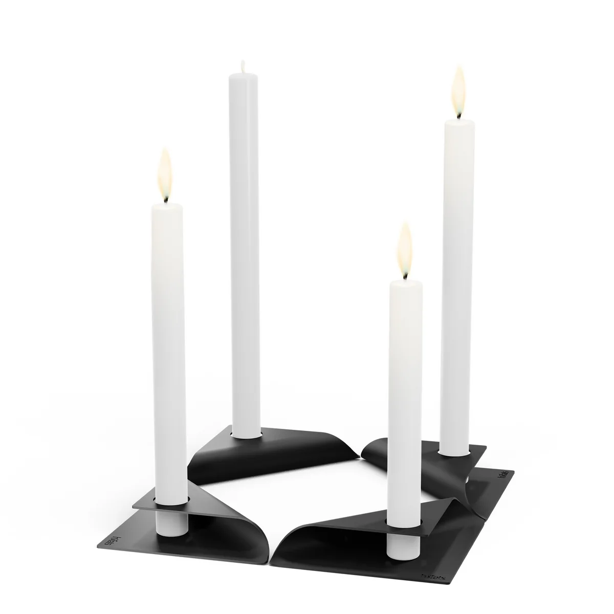 De vloeiende curve van de Square Candle omsluit de kaars volledig en biedt de nodige stabiliteit om de kaars te allen tijde rechtop te houden. Twee kleine doornen op de bodemplaat helpen om de kaars extra vast te zetten en maken het verwijderen van de kaarsstomp een fluitje van een cent.
