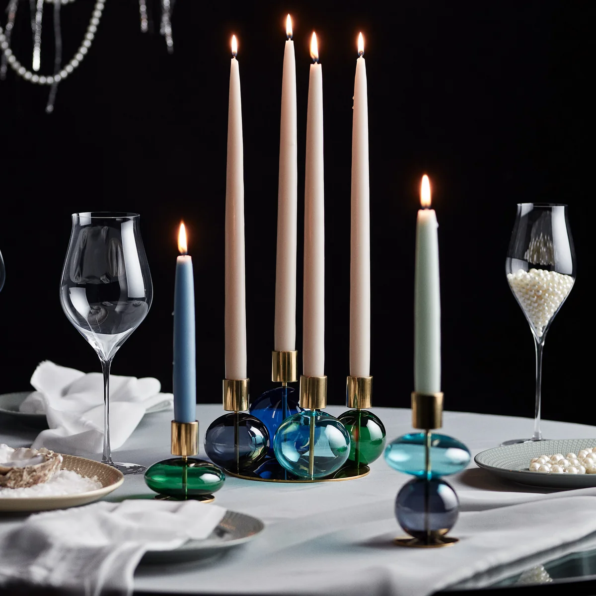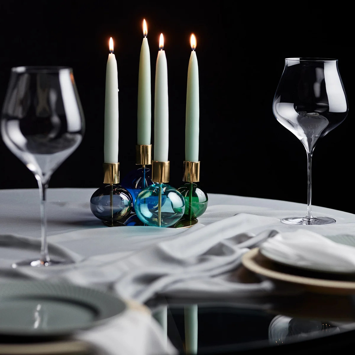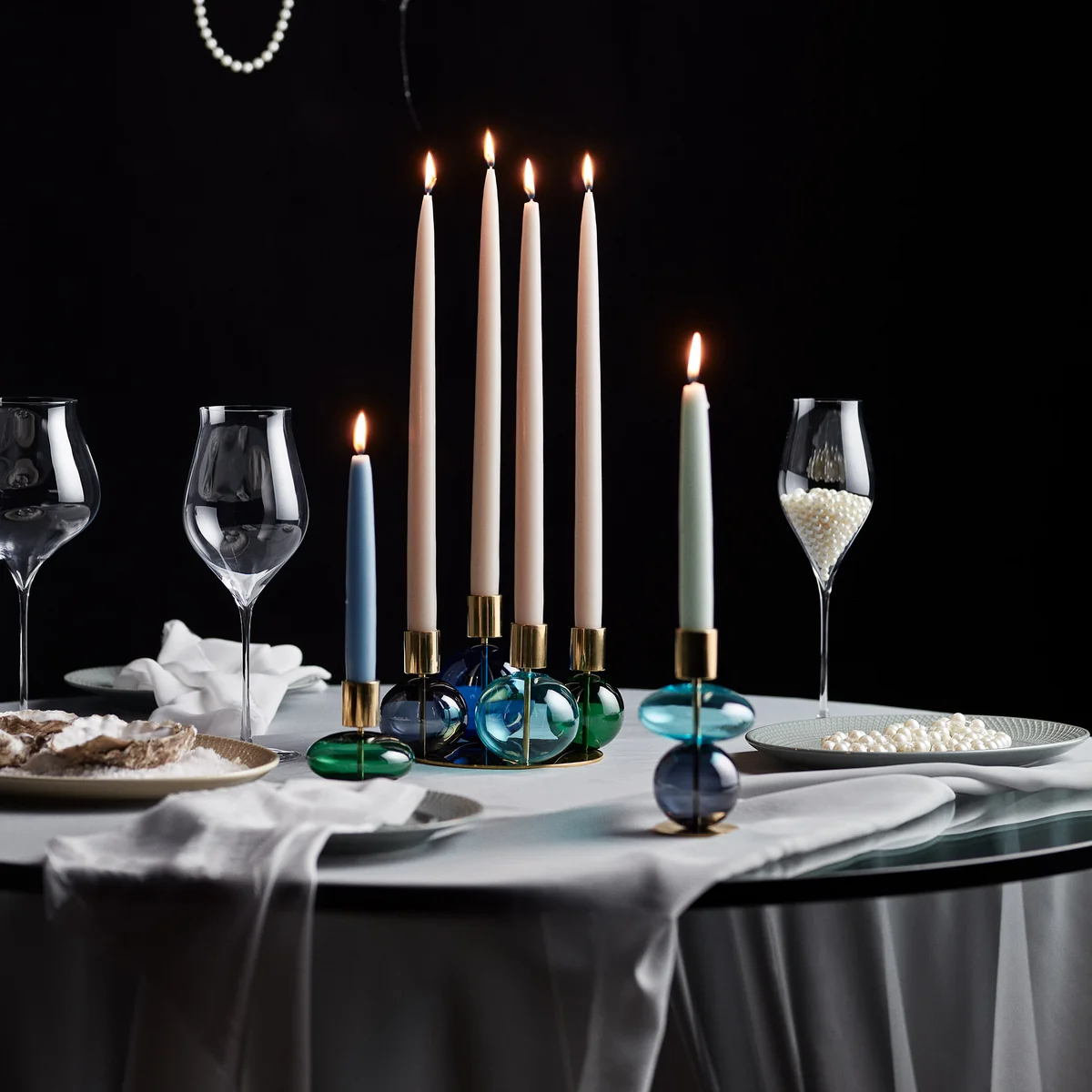 De Bubble kandelaar van Holmegaard brengt Scandinavische glaskunst in een nieuwe, speelse designtaal. Geïnspireerd door de organische lichtheid van opstijgende luchtbellen is het resultaat een object dat indruk maakt met zijn heldere lijnen en harmonieuze stapelstructuur. Gemaakt van mondgeblazen glas is elke kandelaar een uniek stukje vakmanschap. Het doorschijnende materiaal vangt zachtjes het kaarslicht en creëert een sfeervolle ambiance - individueel of als onderdeel van een ensemble.