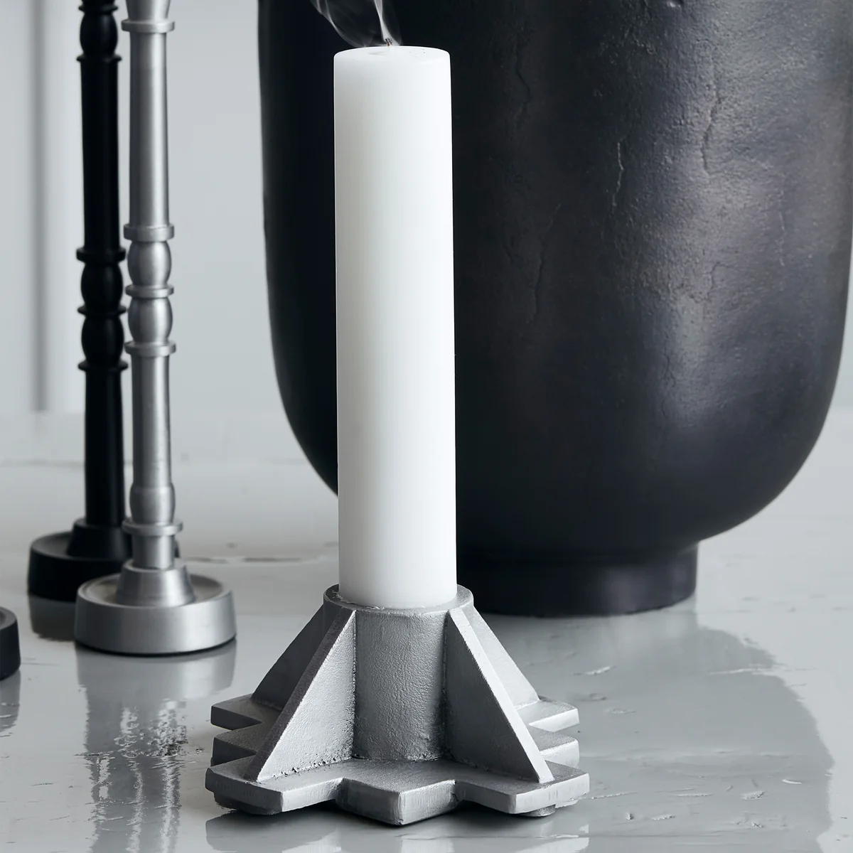 De Castle kandelaars van House Doctor worden gekenmerkt door een minimalistische en industriële look. De kandelaars passen goed in het interieur en ogen zeer modern door hun eenvoudige kleurstelling en de sculpturale vorm. Klassieke en elegante kleurnuances trekken de kandelaars in een discrete richting. De stijlvolle afwerking laat de eigenschappen van het aluminium mooi uitkomen.