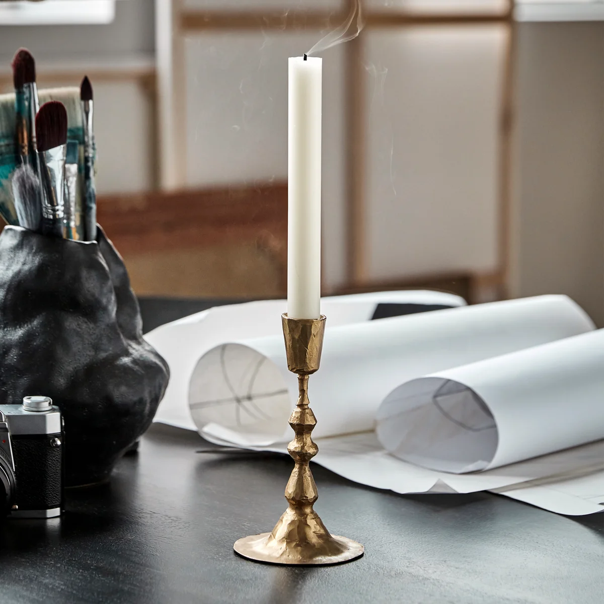 House Doctor De Don kandelaar van combineert handgemaakt ijzer met een elegante antiek gouden afwerking die een ontspannen elegantie uitstraalt. Deze kandelaar is perfect voor elk type interieur en gelegenheid en kan prachtig gecombineerd worden met andere kandelaars of opgesteld worden met een kortere versie uit dezelfde serie om een harmonieuze maar opvallende decoratie te creëren. De kaarshouder Don is geschikt voor kaarsen met een diameter van 2,2 cm en brengt stijlvolle accenten in je huis.
