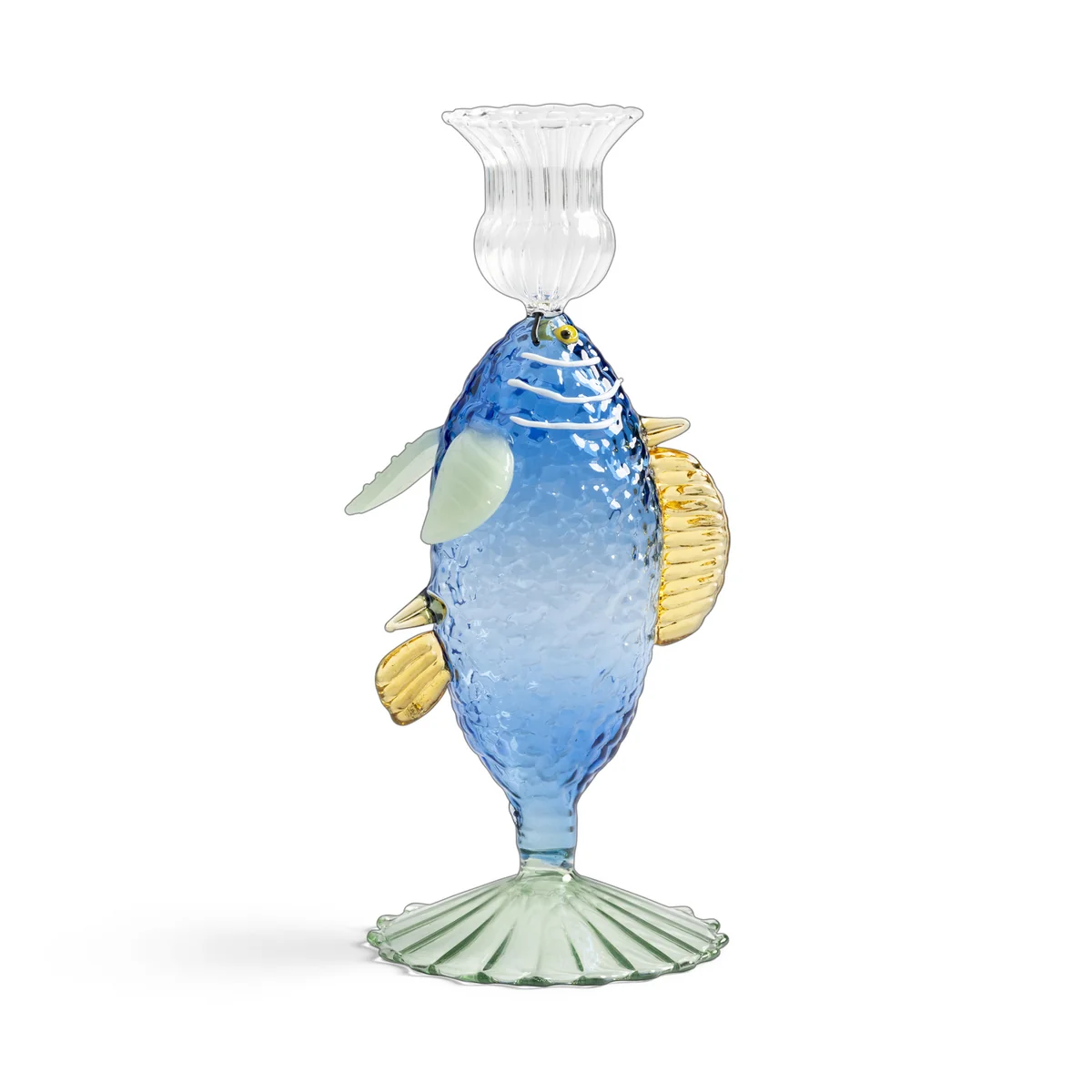 Deze visvormige kaarsenhouder van borosilicaatglas brengt maritieme lichtheid naar elke tafelsetting. De handgemaakte details maken elk stuk uniek, terwijl het perfect is voor een standaard dinerkaars. Geleverd in de kenmerkende & klevering -geschenkdoos, is het een stijlvolle aanvulling op zomeravonden of een speciaal cadeau.