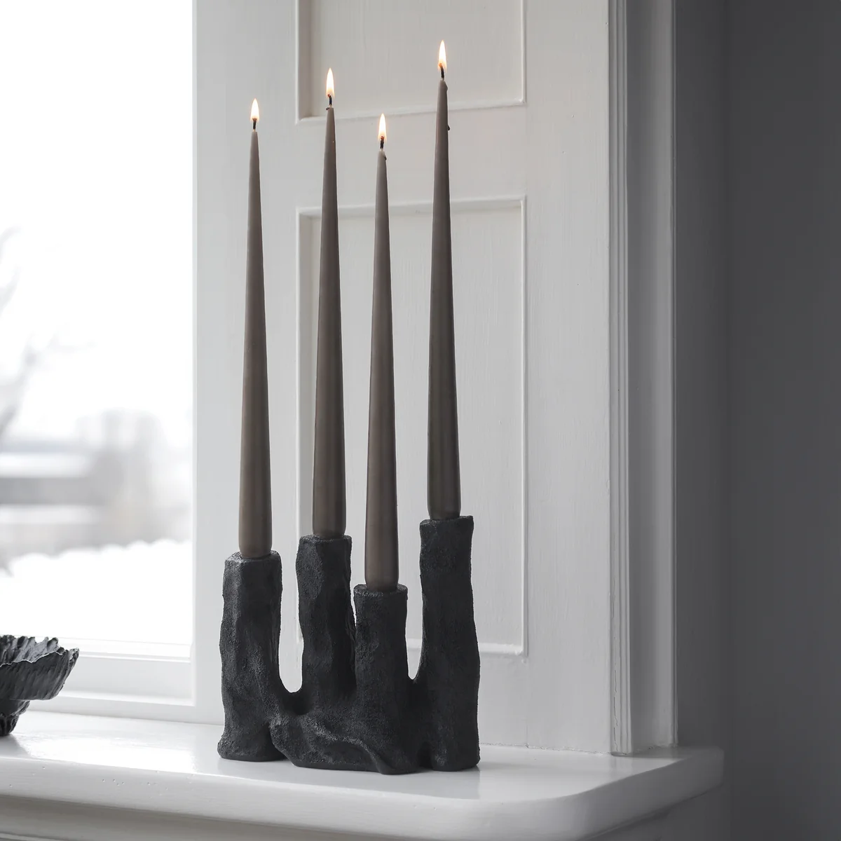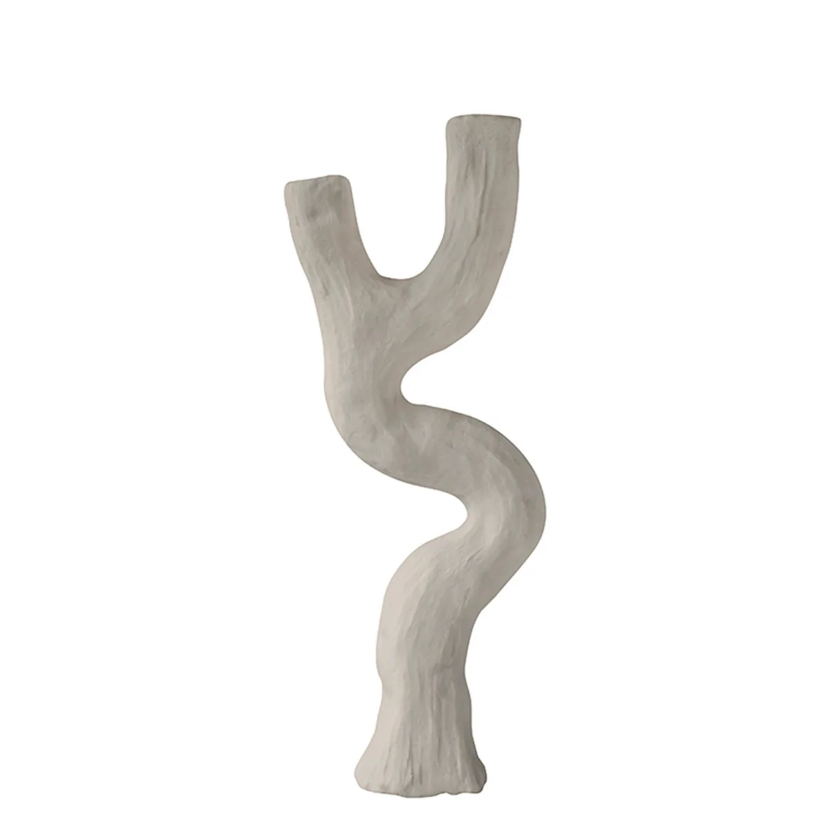 De kandelaar uit de collectie Art Piece Mette Ditmer collectie uit brengt karakter en scherpte in het interieur met zijn aanzienlijke grootte en unieke vorm. De gedraaide vorm van de kandelaar creëert een organische expressie, die wordt benadrukt door het ruwe oppervlak.