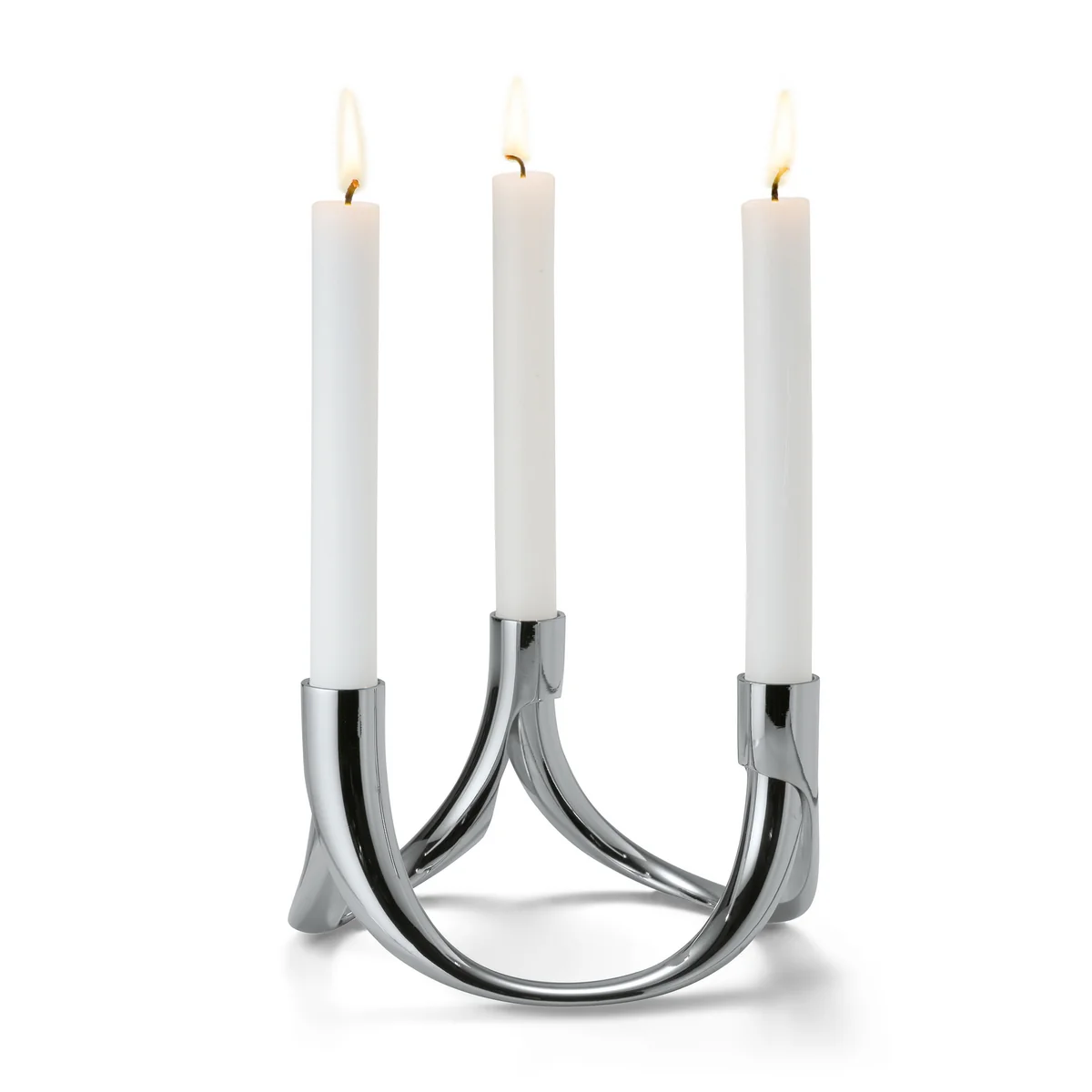 De Bow kandelaar van Philippi is gemaakt van hoogglans gepolijst nikkel en is verkrijgbaar in verschillende afwerkingen.