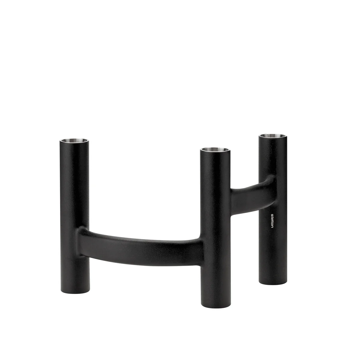 Het gebogen ontwerp van de driearmige kandelaar van von Stelton wordt gekenmerkt door een expressieve, organische vormentaal. De kandelaar Ora kan op zichzelf staan of in combinatie met anderen en maakt, door de manier waarop de houders worden gepositioneerd of omgedraaid, een continue verandering in de expressie en het design effect van de betreffende opstelling mogelijk. Het is ontworpen door Daniel Debiasi & Federico Sandri.