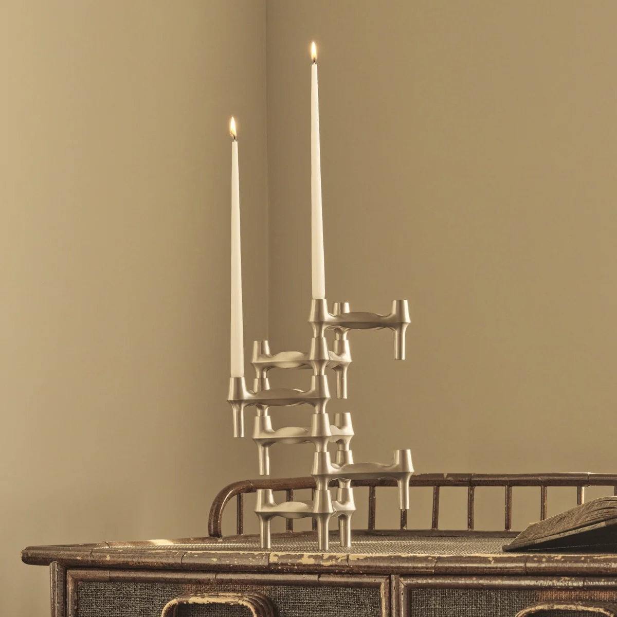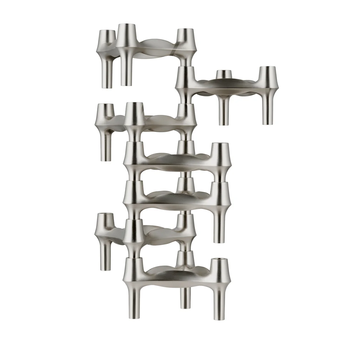 De BMF kandelaar van Stoff Nagel is een iconisch ontwerp uit de jaren 60. De body bestaat uit een stapelbaar, driepotig ontwerp dat zijn effect ontvouwt in een moderne sfeer. Desgewenst kunnen de kandelaars worden aangevuld met kaarsen naar keuze, waardoor ze een opvallende verschijning worden op elke plank of tafel. De kandelaars zijn afzonderlijk of in sets verkrijgbaar en kunnen gecombineerd worden om een arrangement op maat te maken.