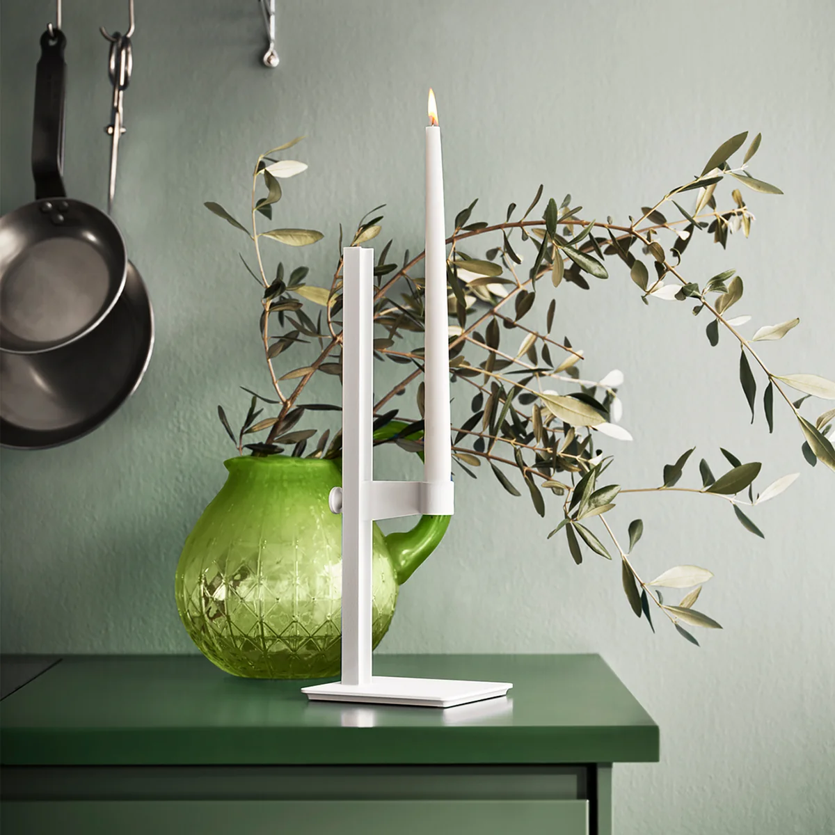 De Museum kandelaar van TAF Studio voor String inspireert met zijn verstelbare functie. Hij is gemaakt van gerecycleerd aluminium en is verkrijgbaar in de afmetingen (B x H x D) 13 x 15 x 40 cm. De kaarsen moeten een minimumhoogte van 3,5 cm en een maximumhoogte van 35,5 cm hebben.