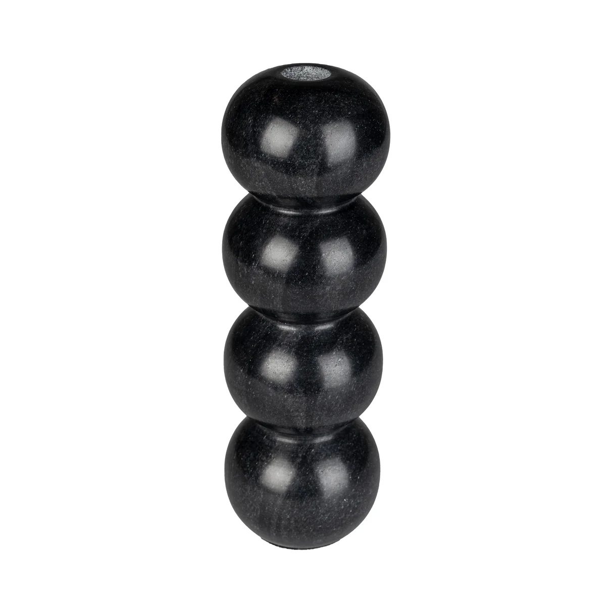 De Rome kandelaar van Zuiver brengt de tijdloze charme van oude architectuur in je moderne huis. Het sculpturale silhouet van vier gestapelde bollen doet denken aan Romeinse zuilen en maakt een stijlvol statement op een dressoir, eettafel of vensterbank. Gemaakt van massief natuursteen - elegant marmer in zwart of wit of warm travertijn - maakt de kandelaar indruk met zijn unieke adering, waardoor elk stuk uniek is. Met een hoogte van 24 cm en een basisoppervlak van 8 × 8 cm is de kandelaar Rome perfect voor klassieke pilaarkaarsen en werkt dankzij zijn gewicht ook als een decoratief object op zichzelf. Het fijn gepolijste oppervlak is gemakkelijk schoon te maken met een droge doek en behoudt lang zijn glans.