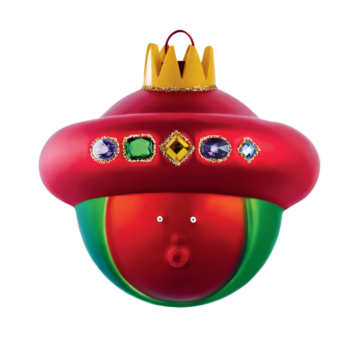 De met de hand versierde drie wijze mannen kerstballen van mondgeblazen glas maken deel uit van de Palle Presepe-collectie (in het Italiaans: kerststal kerstballen) van A di Alessi. Ze vertegenwoordigen één klassieke kerststalfiguren die hun kerststal direct naast de kerstboom uitvoeren.
