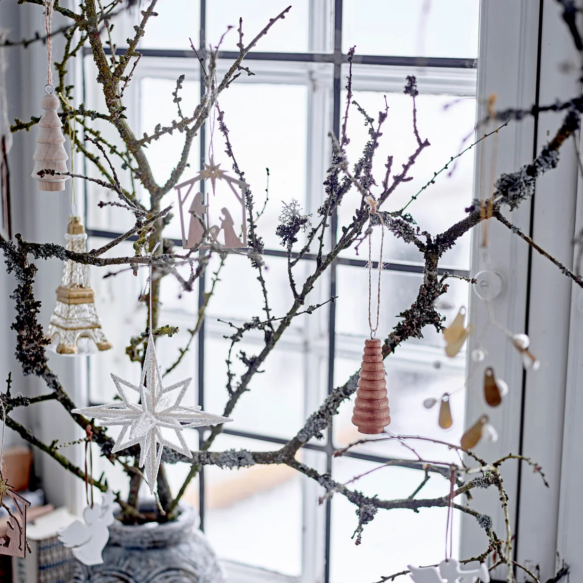 De Jivan ornamenten van Bloomingville zijn een set van drie mooie kerstornamenten. Ze zijn gemaakt van hout in verschillende tinten en hebben de vorm van een kerstboom. Ze zijn perfect om een moderne en eenvoudige look te creëren met Kerstmis.