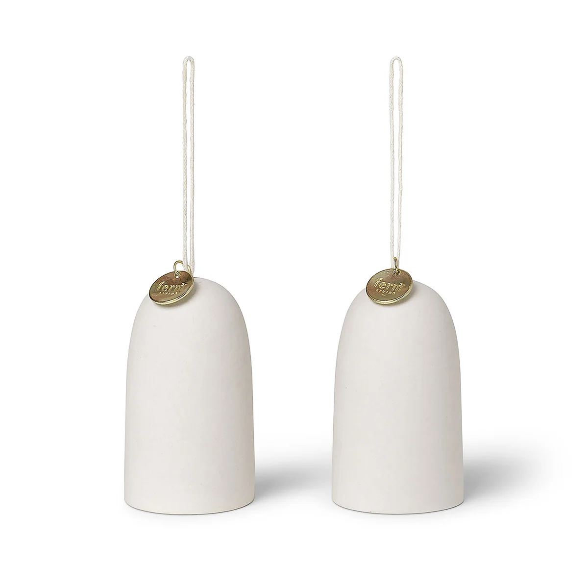 De mooie keramische belhangers zijn de ideale boodschappers van het kerstseizoen. De charmante set van 2, gemaakt van ongeglazuurd en mat steengoed, brengt het kerstseizoen in de juiste stemming. De delicate belletjes zijn bevestigd aan een wasboomkoordje zodat ze gemakkelijk aan de kerstboom of op andere mooie plaatsen in de huiskamer kunnen worden gehangen.