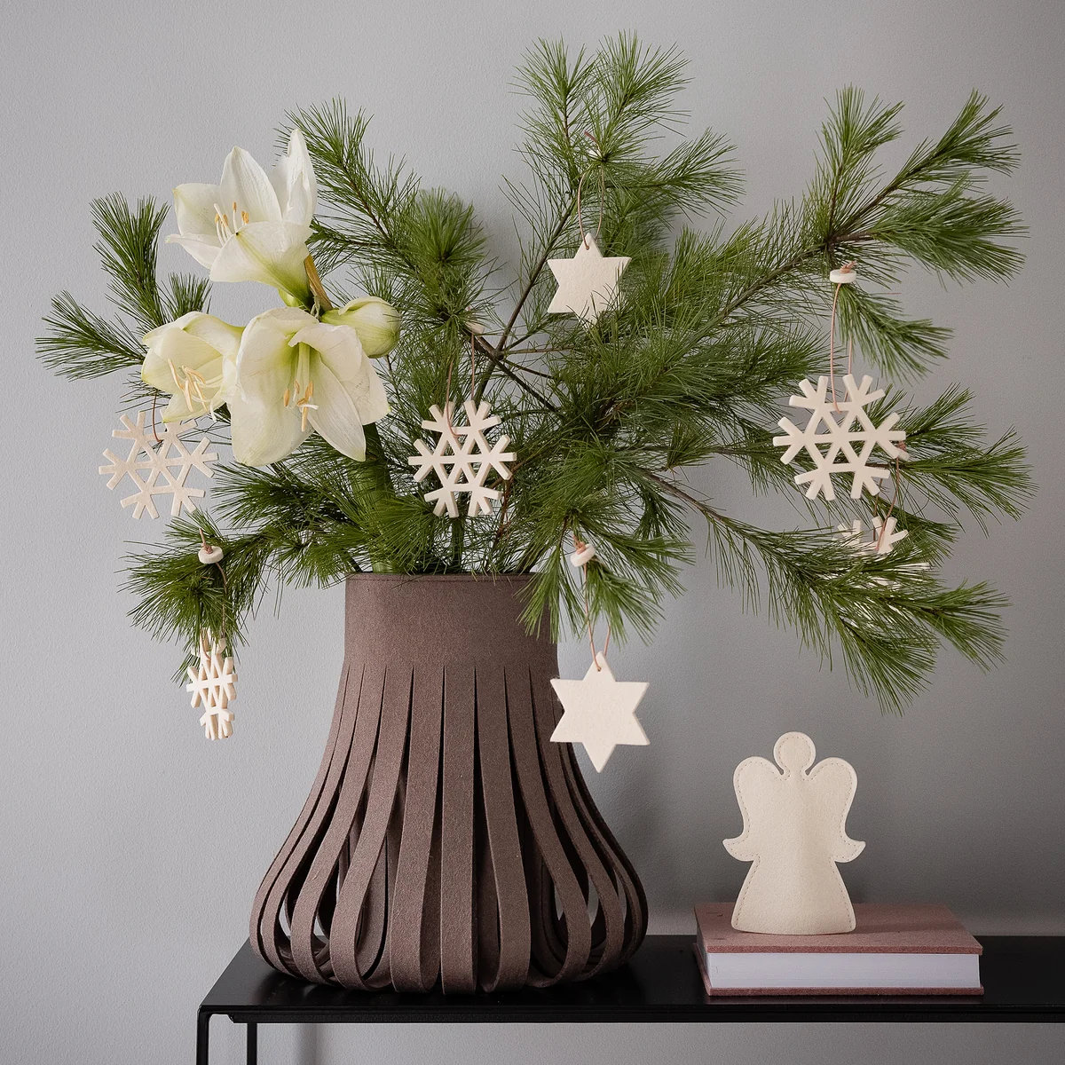 Hey-Sign De sneeuwkristallen hanger van is de perfecte aanvulling op elke feestelijke decoratie. Als sieraad aan de kerstboom, als creatief cadeau-idee of als stijlvolle tafeldecoratie, hij brengt een feestelijke kerstsfeer in elke kamer. De hanger is gemaakt van 100% zuiver scheerwol en wordt geleverd met een leren bandje van hoge kwaliteit. Elke set bevat vier stuks, die verkrijgbaar zijn in verschillende kleuren. Dankzij de vormvastheid, robuustheid en duurzaamheid is de hanger bijzonder onderhoudsvriendelijk. Hij is ook vuil- en waterafstotend, waardoor het een praktisch en mooi decoratief object is.