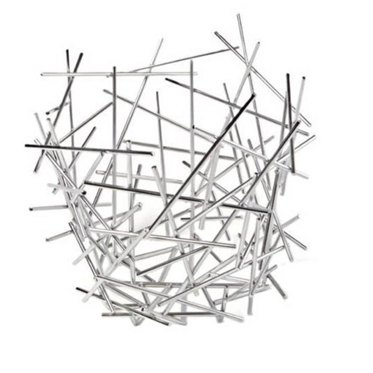 De Alessi Blow Up fruitmand, die doet denken aan een spelletje jackstraws, is gebaseerd op het idee van het lassen van hypothetische staaldraadrestanten om zo verschillende vormen van containers te creëren.
