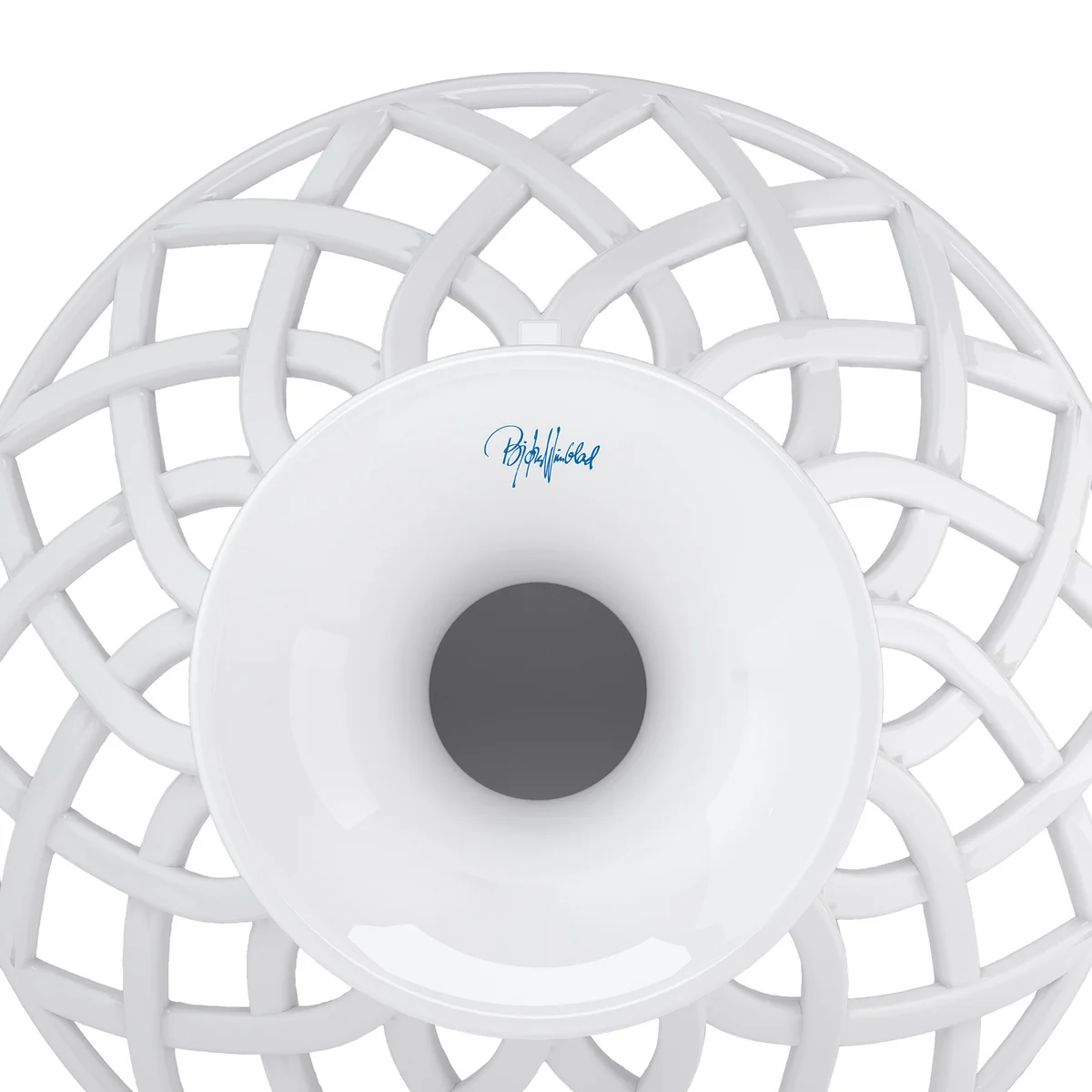 De Dora fruitschaal op voet van Bjørn Wiinblad combineert functionele vorm met artistieke expressie. De schaal is gemaakt van geglazuurd keramiek en versierd met een bloemendessin, en weerspiegelt de karakteristieke stijl van de Deense kunstenaar. Het liefdevol ontworpen gezicht en de opvallende ornamenten maken het een decoratief middelpunt op de eettafel of het dressoir. Met een diameter van 25 cm biedt de schaal genoeg ruimte voor fruit, koekjes of kleine arrangementen - stijlvol gepresenteerd op een verhoogde sokkel.
