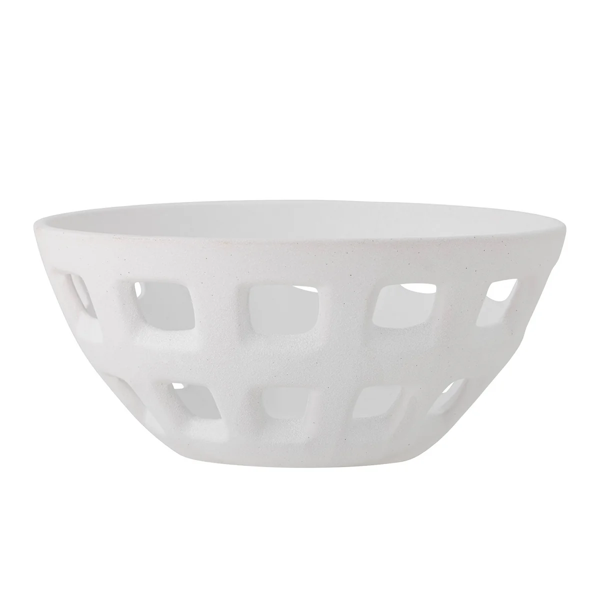 De Foligno kom van Bloomingville heeft een sculpturaal ontwerp dat zich onderscheidt van de rest van het servies. De prachtige schaal heeft holle gaten waardoor hij een geweldige fruitmand wordt of een prachtige broodschaal waarin de inhoud zichtbaar is.