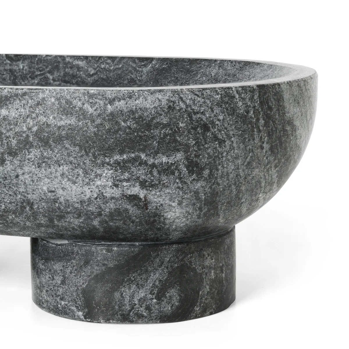 De kom is gemaakt van zwart Selvaras marmer uit India of Indisch Banswara marmer in wit. Het materiaal en de vorm van de kom combineren zware en lichte contrasten en creëren een marmeren kom die decoratief is in de keuken of woonkamer. In de kom kunnen gebakjes of snoepjes mooi worden geserveerd of sleutels of paperclips decoratief worden opgeborgen.